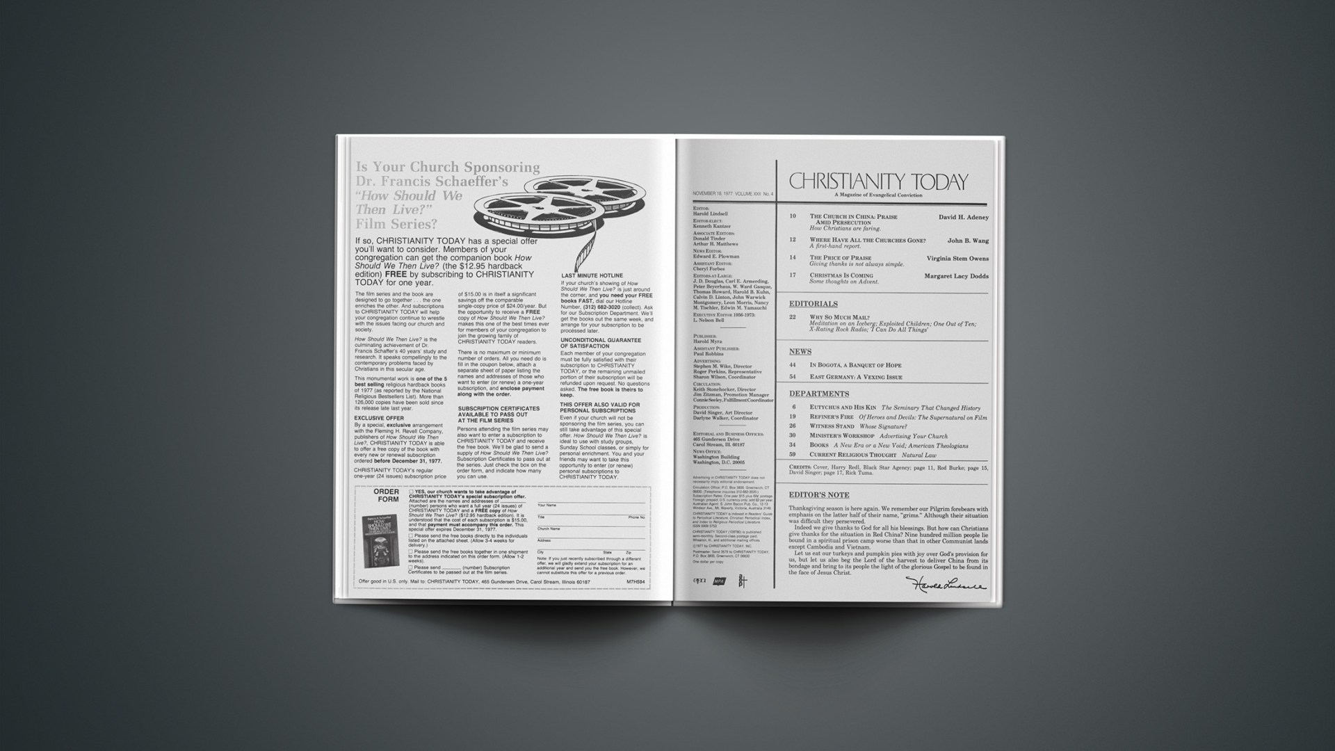 Indeed we give thanks to God for all his blessings. But how can Christians give thanks for the situation in Red China? Nine hundred million people lie bound in a spiritual prison camp worse than that in other Communist lands except Cambodia and Vietnam.