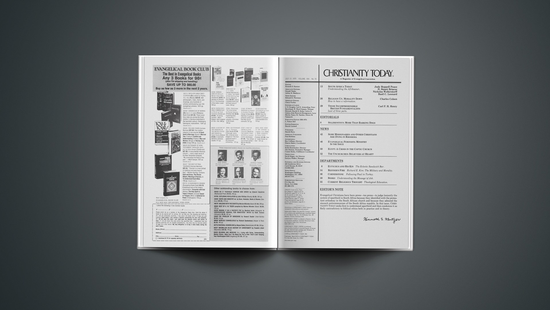 Evangelical Christians have been prone—too prone—to judge leniently the system of apartheid in South Africa because they identified with the protestant orthodoxy in the South African church and because they admired the staunch anticommunism of the South Africa republic. In this issue, CHRISTIANITY TODAY seeks first to understand apartheid and then condemns it as flatly contradictory to biblical ethics both in practice and in theory.