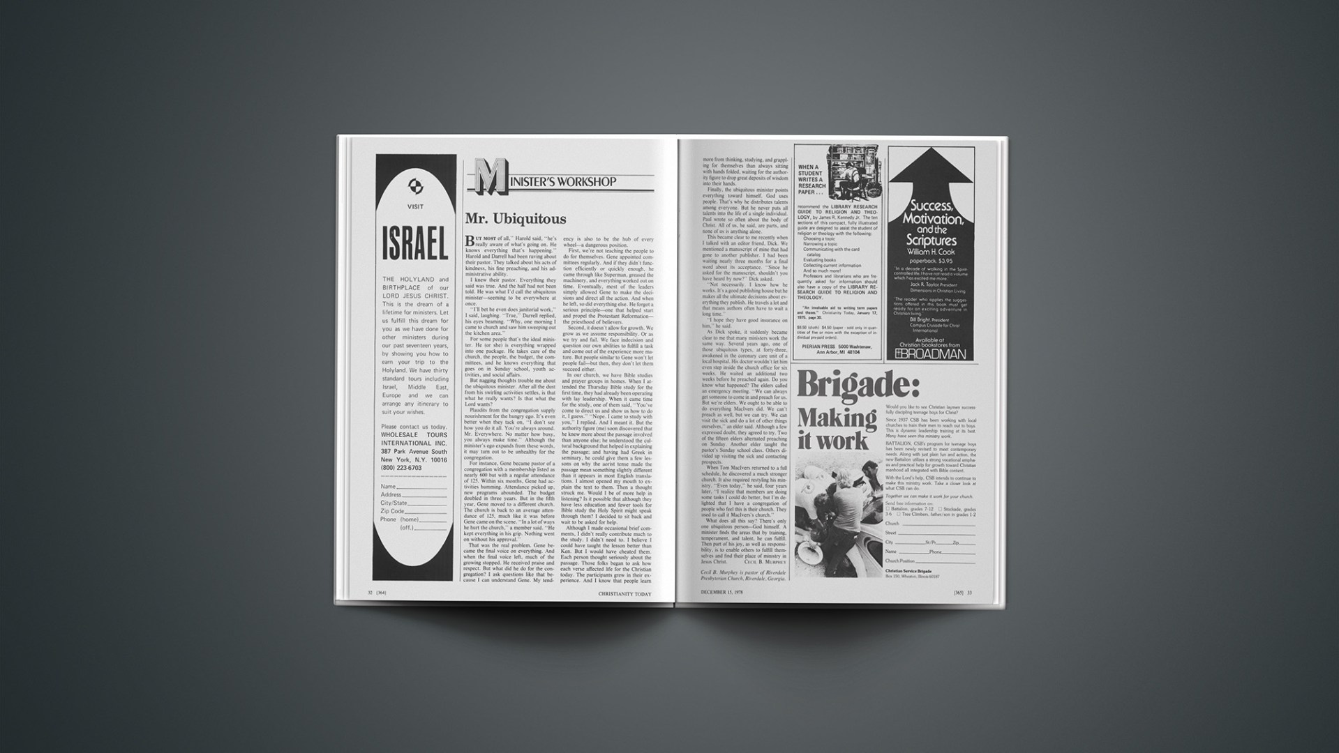As Dick spoke, it suddenly became clear to me that many ministers work the same way. Several years ago, one of those ubiquitous types, at forty-three, awakened in the coronary care unit of a local hospital. His doctor wouldn’t let him even step inside the church office for six weeks. He waited an additional two weeks before he preached again. Do you know what happened? The elders called an emergency meeting. “We can always get someone to come in and preach for us. But we’re elders. We ought to be able to do everything MacIvers did. We can’t preach as well, but we can try. We can visit the sick and do a lot of other things ourselves,” an elder said. Although a few expressed doubt, they agreed to try. Two of the fifteen elders alternated preaching on Sunday. Another elder taught the pastor’s Sunday school class. Others divided up visiting the sick and contacting prospects.