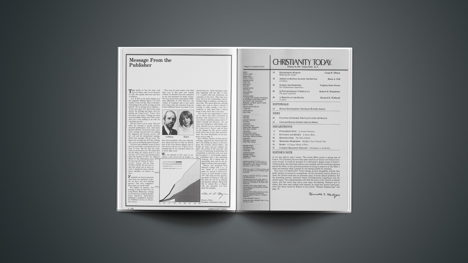 In my last editor’s note I wrote: ‟The entire Bible carries a strong note of humor. The Christian Church today takes itself too seriously—and God not seriously enough. It would be stronger if it cultivated a deeper sense of humor.” Unfortunately, the italicized sentence was omitted, and the resulting nonsense placed the editor in the awkward position of trying to improve on the Bible. I must now practice what I preach by not taking myself too seriously.