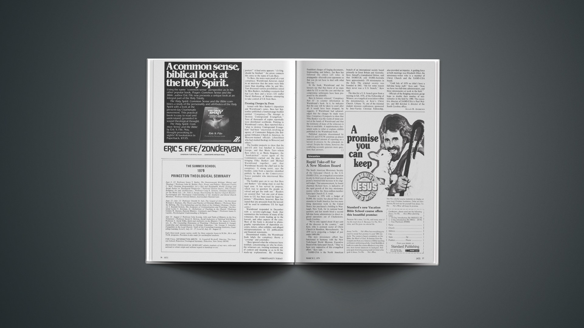 Founded in 1976 with a budget of $4,000, the society has placed three missionaries in South America; has two more doing deputation work in the United States; has purchased a building in Wantaugh, New York, for its national headquarters; and last month hired a second full-time home administrator to direct regional operations out of Charlestown, South Carolina.