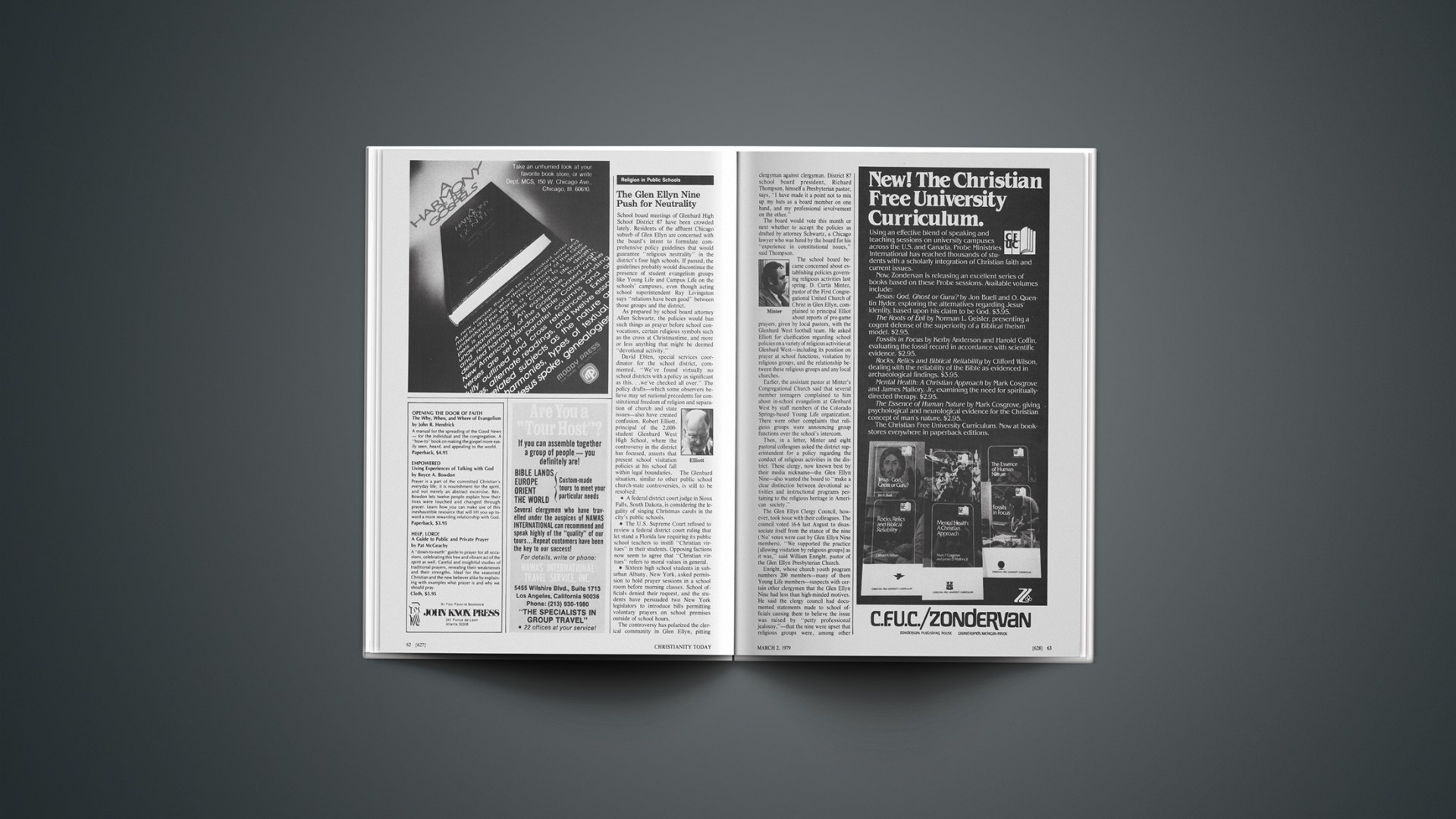 School board meetings of Glenbard High School District 87 have been crowded lately. Residents of the affluent Chicago suburb of Glen Ellyn are concerned with the board’s intent to formulate comprehensive policy guidelines that would guarantee “religious neutrality” in the district’s four high schools. If passed, the guidelines probably would discontinue the presence of student evangelism groups like Young Life and Campus Life on the schools’ campuses, even though acting school superintendent Ray Livingston says “relations have been good” between those groups and the district.