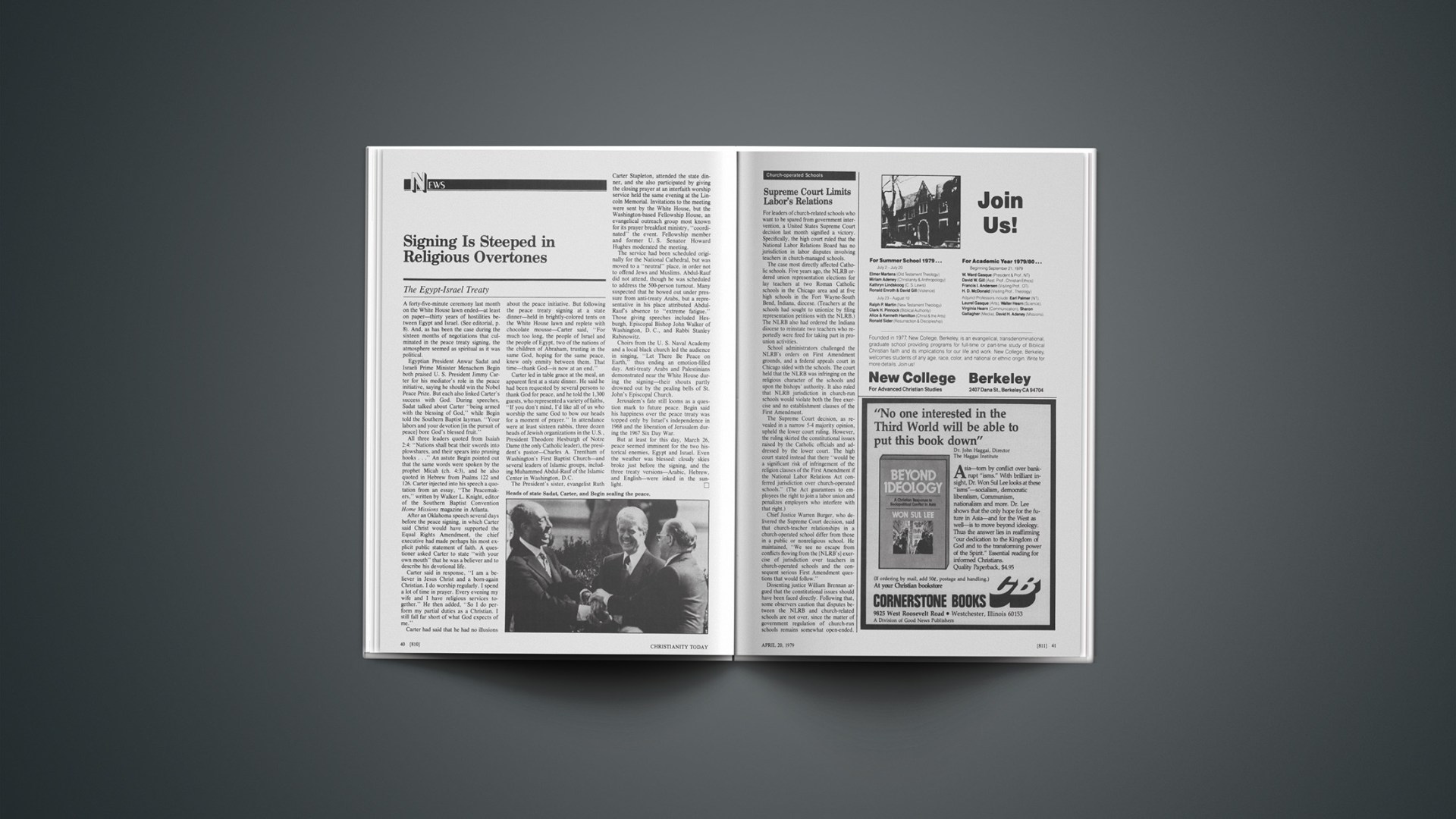 A forty-five-minute ceremony last month on the White House lawn ended—at least on paper—thirty years of hostilities between Egypt and Israel. (See editorial, p. 8). And, as has been the case during the sixteen months of negotiations that culminated in the peace treaty signing, the atmosphere seemed as spiritual as it was political.