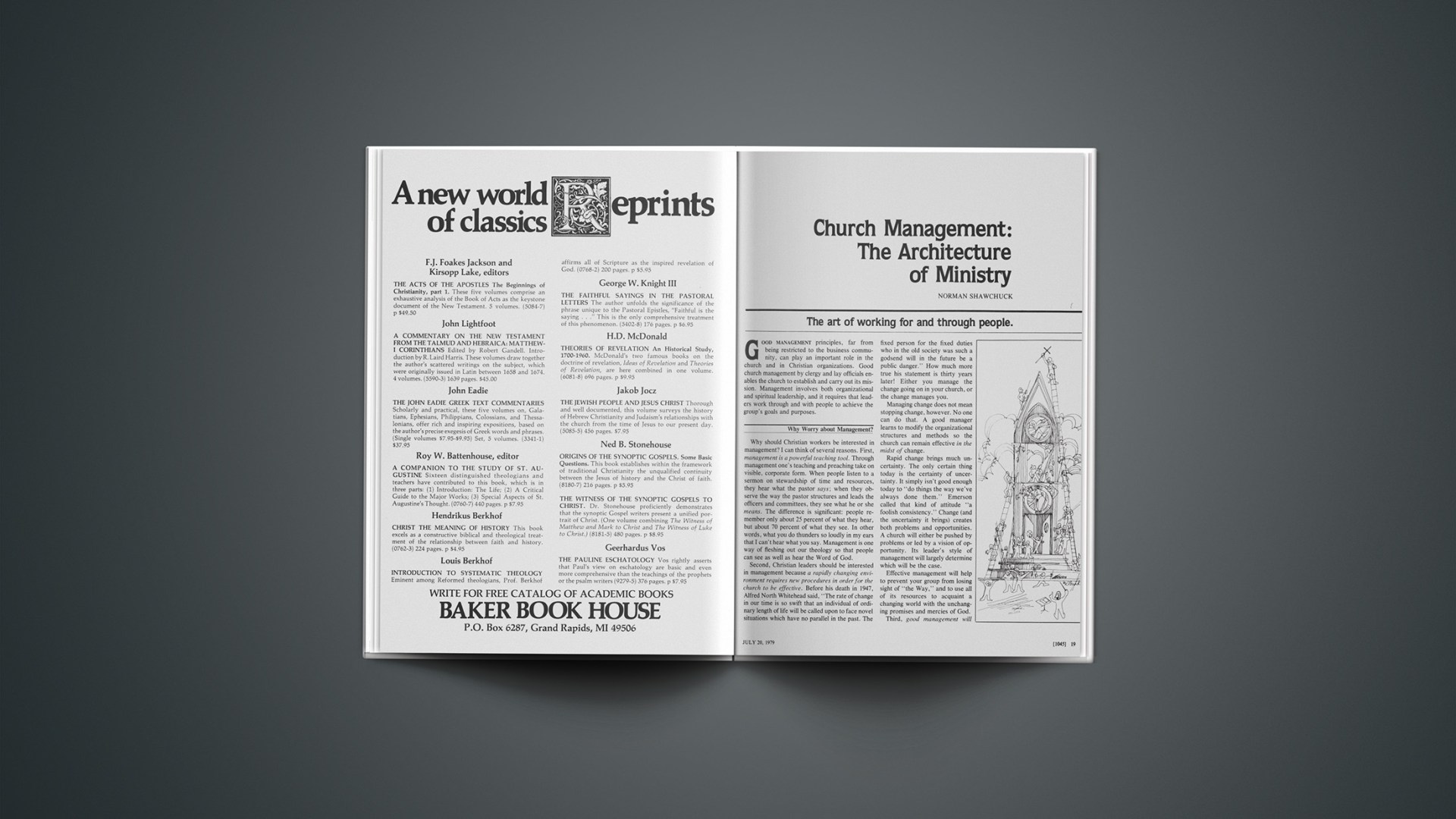 The Bible in various ways stresses the importance of good management. In 1 Corinthians 4:1, Paul writes, “We must be regarded as Christ’s subordinates and as stewards [managers] of the secrets of God” (NEB). When we are called to manage in any part of the church, we are entrusted with the care of an organization that has the marks of eternity upon it. Further, God has given several gifts of ministry to the church, including pastors (Eph. 4:11).