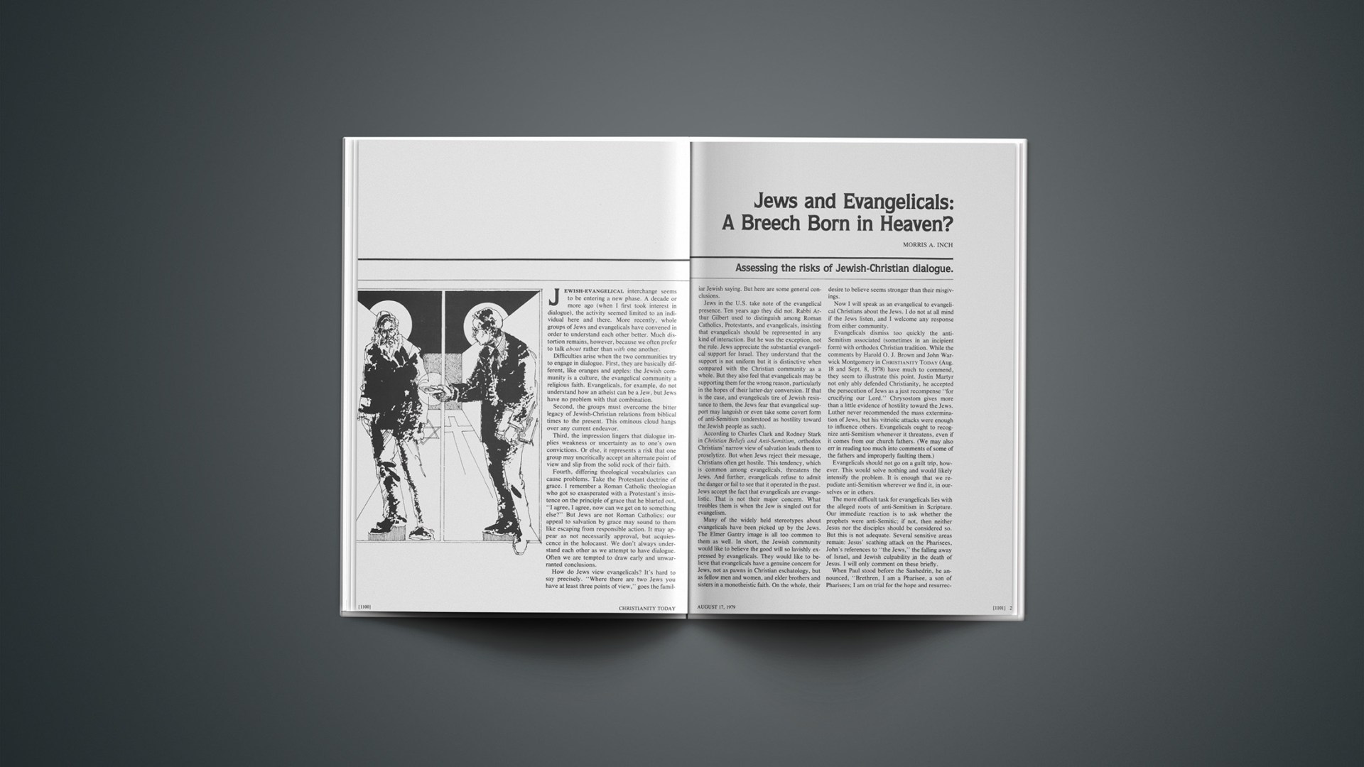 Jewish-evangelical interchange seems to be entering a new phase. A decade or more ago (when I first took interest in dialogue), the activity seemed limited to an individual here and there. More recently, whole groups of Jews and evangelicals have convened in order to understand each other better. Much distortion remains, however, because we often prefer to talk about rather than with one another.