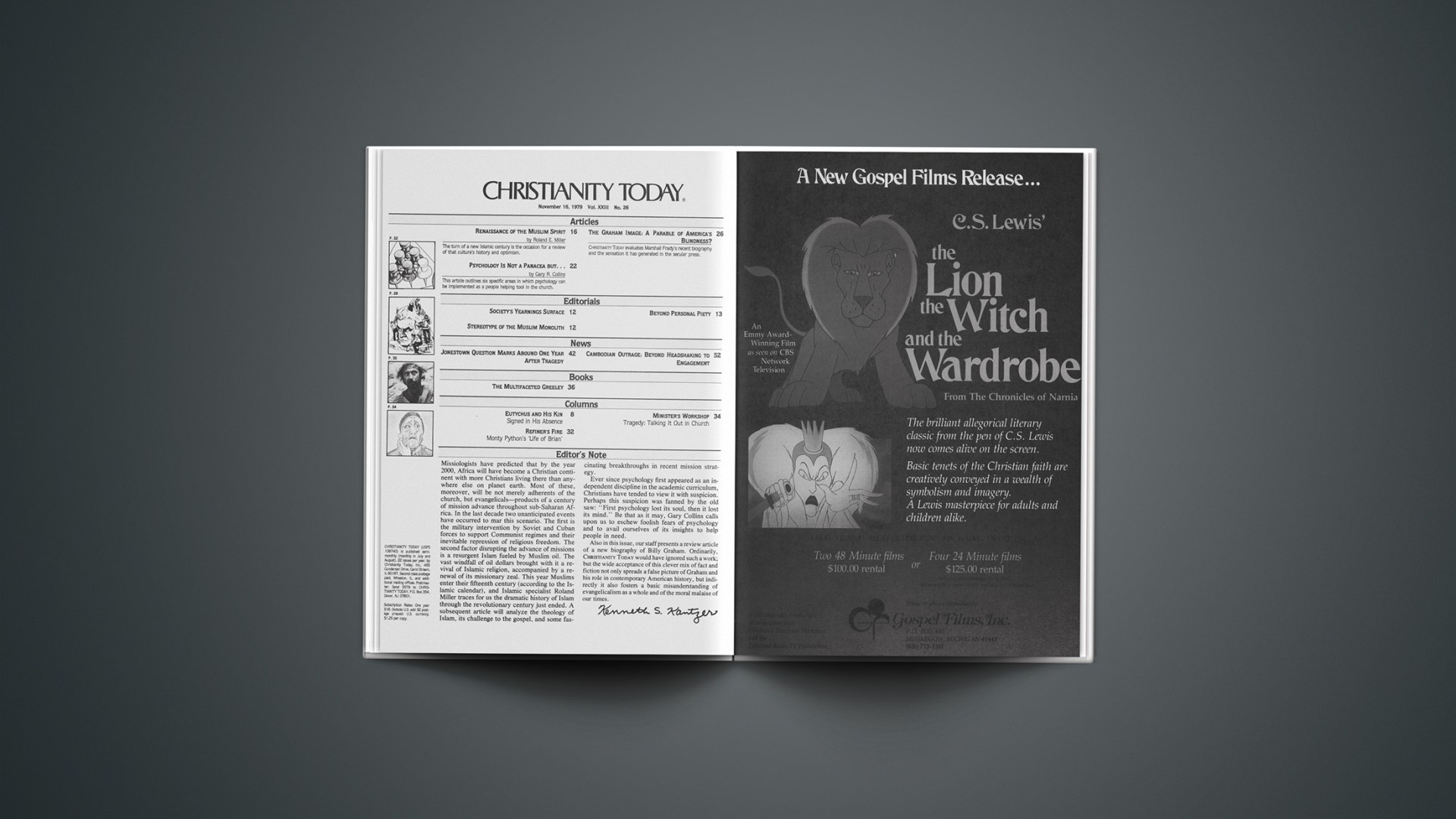 Also in this issue, our staff presents a review article of a new biography of Billy Graham. Ordinarily, CHRISTIANITY TODAY would have ignored such a work; but the wide acceptance of this clever mix of fact and fiction not only spreads a false picture of Graham and his role in contemporary American history, but indirectly it also fosters a basic misunderstanding of evangelicalism as a whole and of the moral malaise of our times.