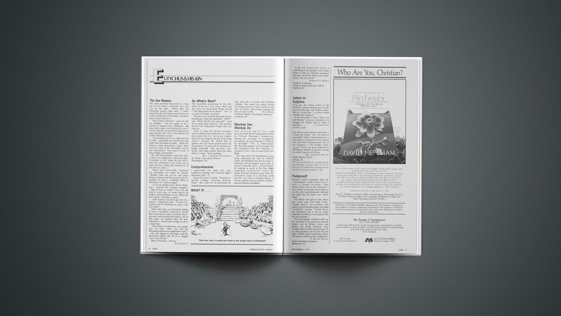 Just what was the column by Eutychus X (“Take One Tablet,” Oct. 19) meant to accomplish? Unless I misinterpreted it, it was meant as a put-down of any readers who may hold a dispensational view of the Scriptures. I had thought CHRISTIANITY TODAY was more dedicated to effecting an attitude of tolerance among its readers than one of division.