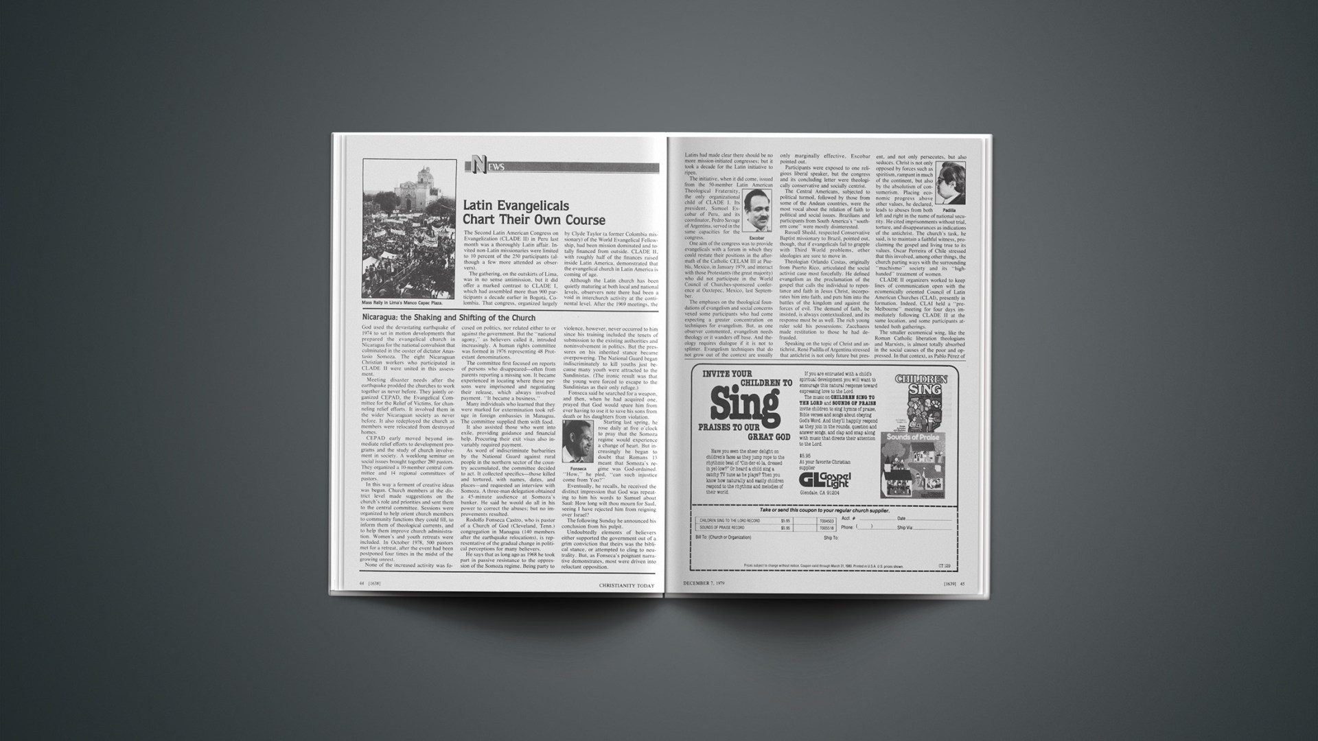 God used the devastating earthquake of 1974 to set in motion developments that prepared the evangelical church in Nicaragua for the national convulsion that culminated in the ouster of dictator Anastasio Somoza. The eight Nicaraguan Christian workers who participated in CLADE II were united in this assessment.