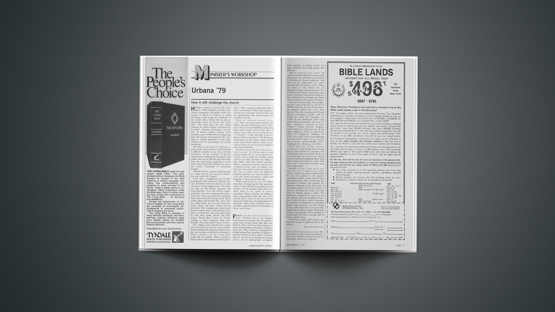 History is about to repeat itself. Once again 17,000 collegians and their missionary counselors will gather at the University of Illinois at Urbana to spend Christmas week facing the challenge of the world’s three billion who do not acknowledge Jesus as Savior and Lord. They will come from all over North America for Inter-Varsity Christian Fellowship’s triennial missionary convention. If history further repeats itself, probably some 10,000 of these college-age men and women will respond to the challenge to commit themselves to the magnificent task of proclaiming the gospel worldwide.