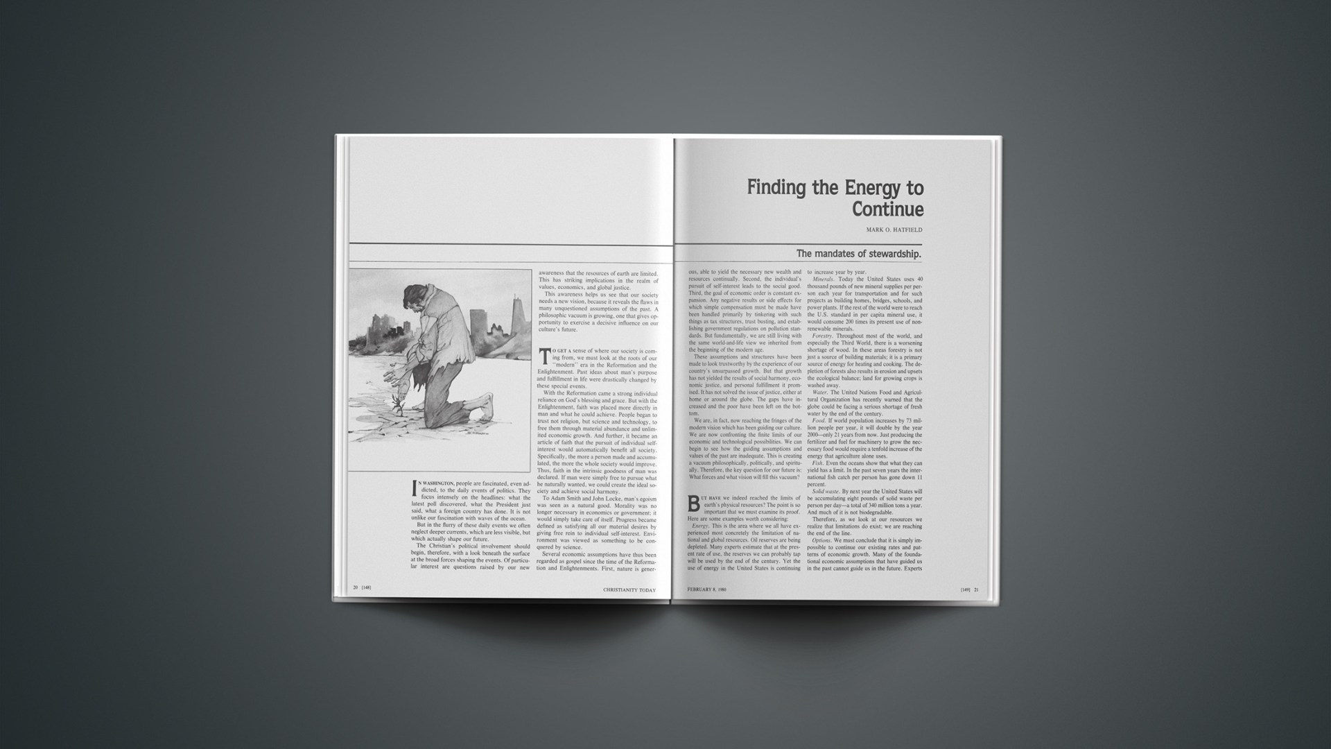 The Christian’s political involvement should begin, therefore, with a look beneath the surface at the broad forces shaping the events. Of particular interest are questions raised by our new awareness that the resources of earth are limited. This has striking implications in the realm of values, economics, and global justice.