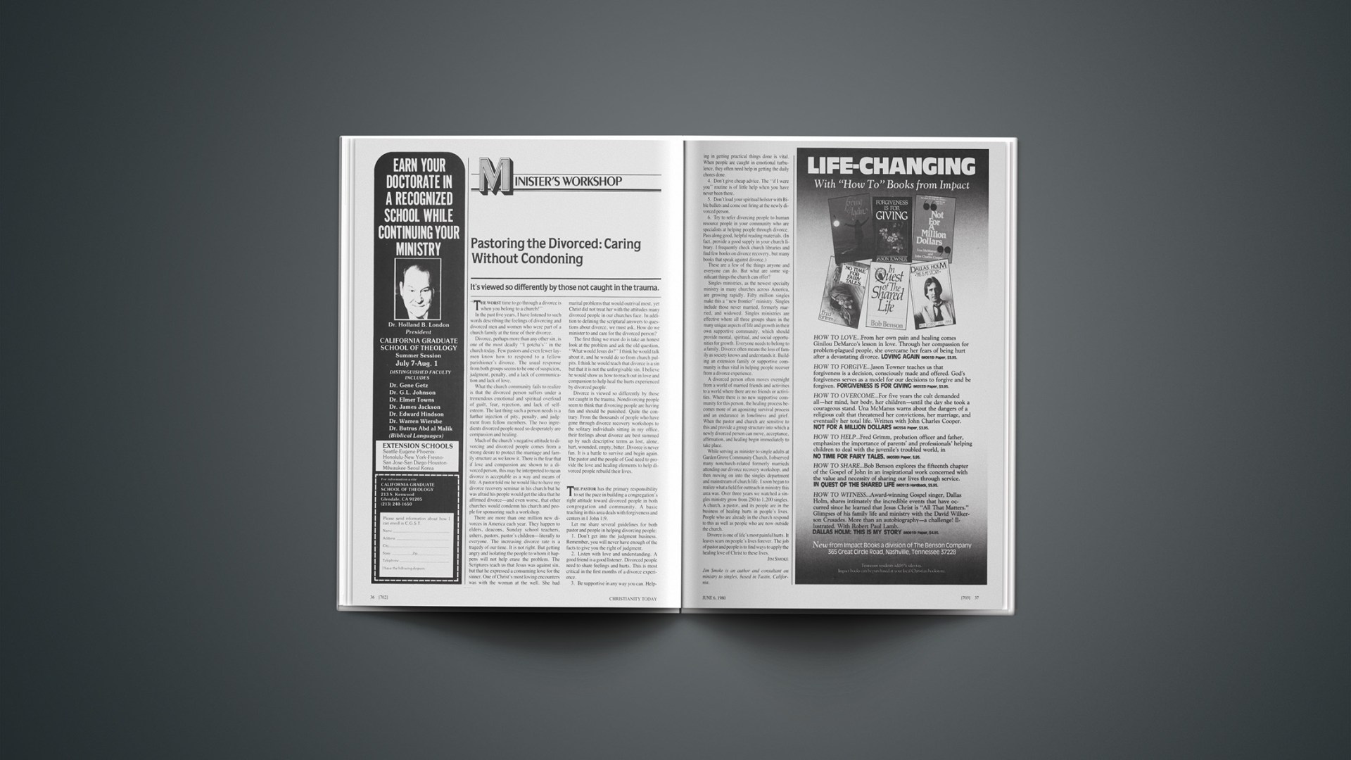 There are more than one million new divorces in America each year. They happen to elders, deacons, Sunday school teachers, ushers, pastors, pastor’s children—literally to everyone. The increasing divorce rate is a tragedy of our time. It is not right. But getting angry and isolating the people to whom it happens will not help erase the problem. The Scriptures teach us that Jesus was against sin, but that he expressed a consuming love for the sinner. One of Christ’s most loving encounters was with the woman at the well. She had marital problems that would outrival most, yet Christ did not treat her with the attitudes many divorced people in our churches face. In addition to defining the scriptural answers to questions about divorce, we must ask, How do we minister to and care for the divorced person?