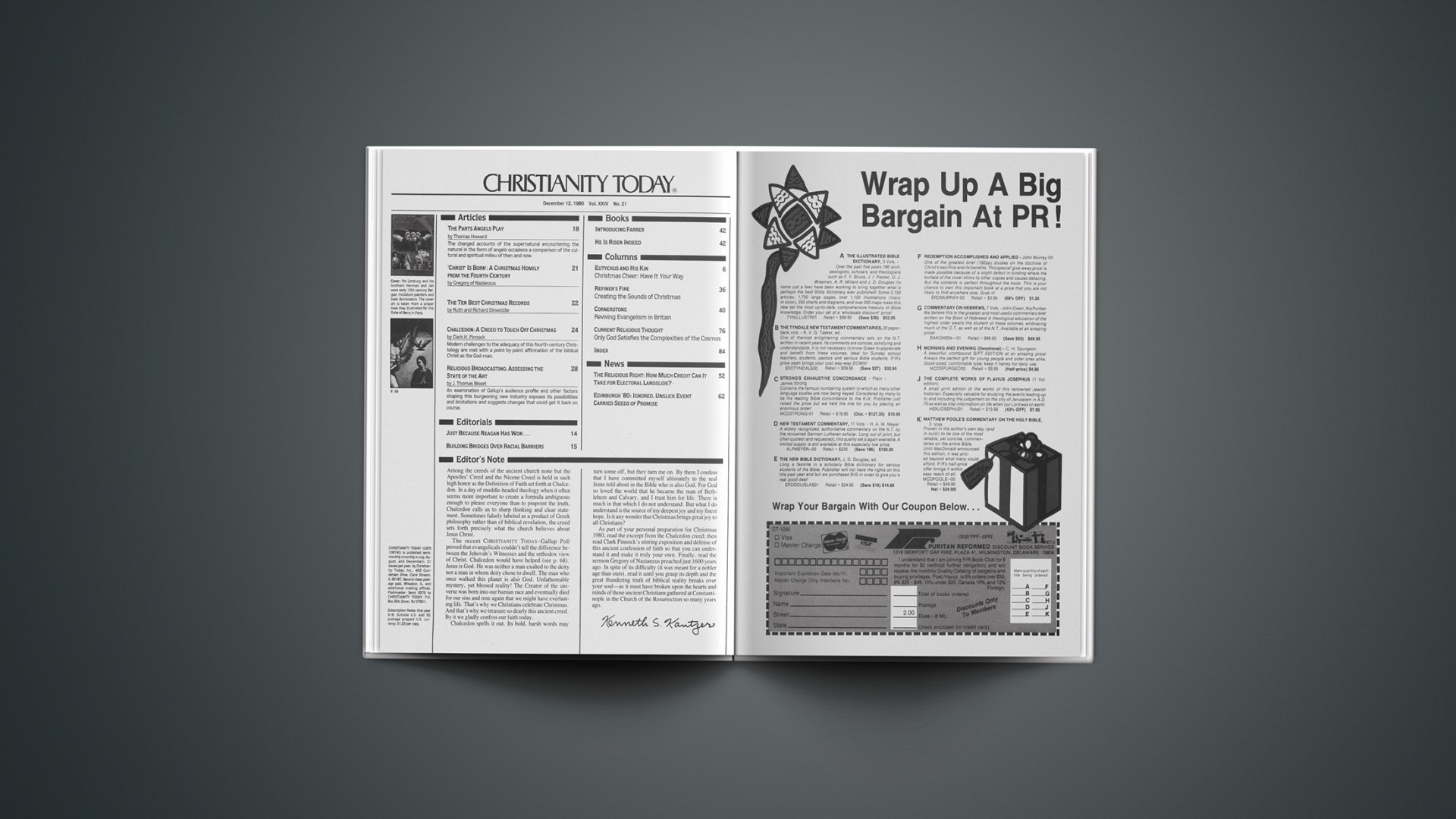 The recent CHRISTIANITYTODAY-Gallup Poll proved that evangelicals couldn’t tell the difference between the Jehovah’s Witnesses and the orthodox view of Christ. Chalcedon would have helped (see p. 68). Jesus is God. He was neither a man exalted to the deity nor a man in whom deity chose to dwell. The man who once walked this planet is also God. Unfathomable mystery, yet blessed reality! The Creator of the universe was born into our human race and eventually died for our sins and rose again that we might have everlasting life. That’s why we Christians celebrate Christmas. And that’s why we treasure so dearly this ancient creed. By it we gladly confess our faith today.