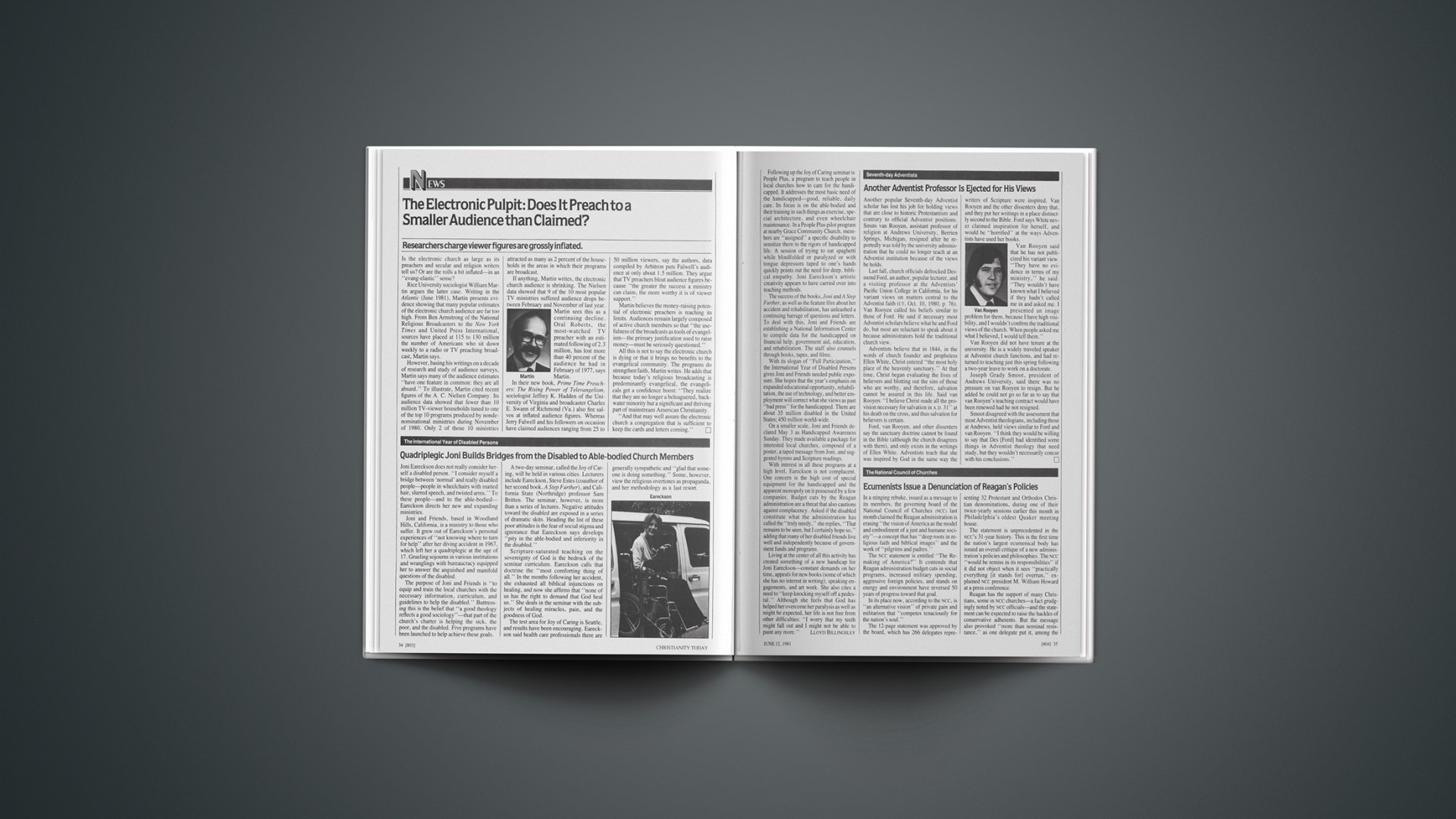 However, basing his writings on a decade of research and study of audience surveys, Martin says many of the audience estimates “have one feature in common: they are all absurd.” To illustrate, Martin cited recent figures of the A. C. Nielsen Company. Its audience data showed that fewer than 10 million TV-viewer households tuned to one of the top 10 programs produced by nondenominational ministries during November of 1980. Only 2 of those 10 ministries attracted as many as 2 percent of the households in the areas in which their programs are broadcast.