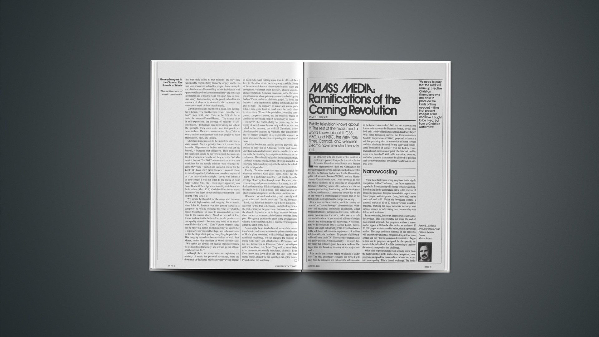 The mass media revolution will probably be in full swing by the end of the 1980s; the ultimate significance of what that means in terms of the cultural, economic, political, and moral implications is still uncertain. We may be certain, however, that the church must play a part. It can offer moral guidance to the new mass media firms, yes; but will it be able to set standards in other ways? Will it be able to use the new mass media effectively?