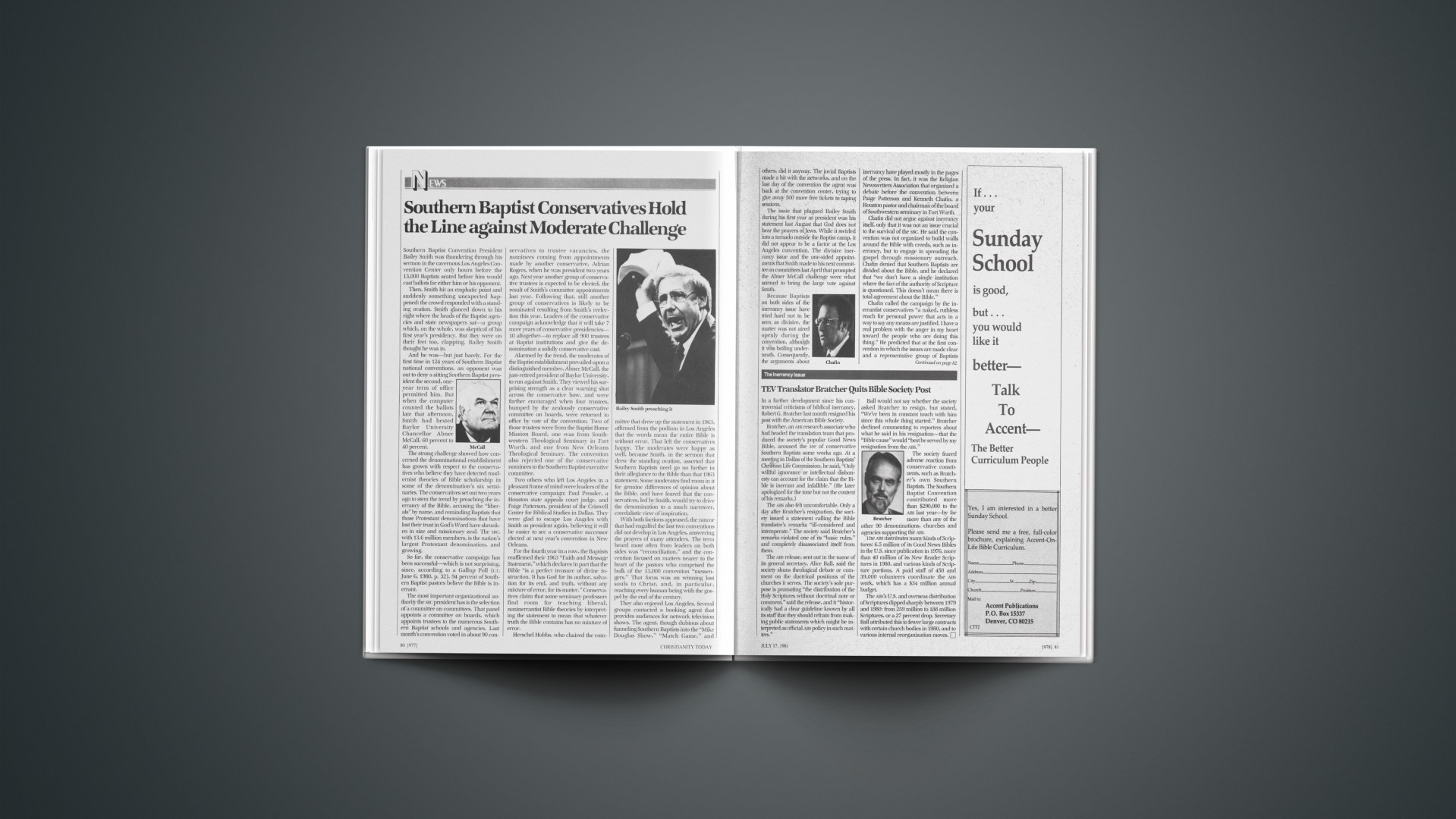 Bratcher, an ABS research associate who had headed the translation team that produced the society’s popular Good News Bible, aroused the ire of conservative Southern Baptists some weeks ago. At a meeting in Dallas of the Southern Baptists’ Christian Life Commission, he said, “Only willful ignorance or intellectual dishonesty can account for the claim that the Bible is inerrant and infallible.” (He later apologized for the tone but not the content of his remarks.)