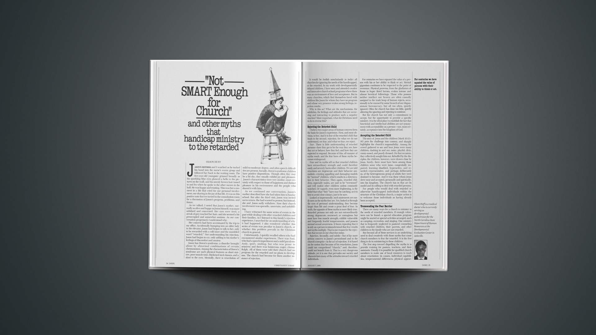For centuries we have equated the value of a person with his or her ability to think or act. Mental gigantism continues to be respected to the point of reverence. Physical prowess, from the gladiators of Rome to Super Bowl heroes, evokes intense and almost heretical followings. Those who possess neither intellect nor brawn are often casually assigned to the trash heap of human rejects, occasionally to be rescued by some branch of our dispassionate bureaucracy, but all too often, quietly ignored. Often the church has done too little, quietly allowing the ignoring and rejecting to continue.