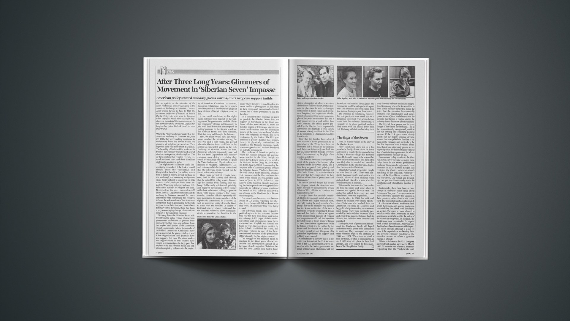 Efforts to influence the U.S. Congress have met with partial success. On May 9, 1980, 50 senators sent a letter to Brezhnev requesting that the Vashchenko and Chmykhalov families be allowed to emigrate. Sen. Carl Levin of Michigan has been most outspoken on behalf of the families in the embassy. On June 27, 1980, he introduced S. 2890, a bill that would have granted both families “permanent residence status” in the United States. The bill would probably have passed, but it never cleared Sen. Edward Kennedy’s Judiciary Committee. The bill was reintroduced as S. 312 in the new session and thus far has more than 60 cosponsors. Once more it is hung up in committee, this time a subcommittee on immigration. Prospects for passage are good—if Christians throughout the United States make it clear to their senators that they wish it to be supported.