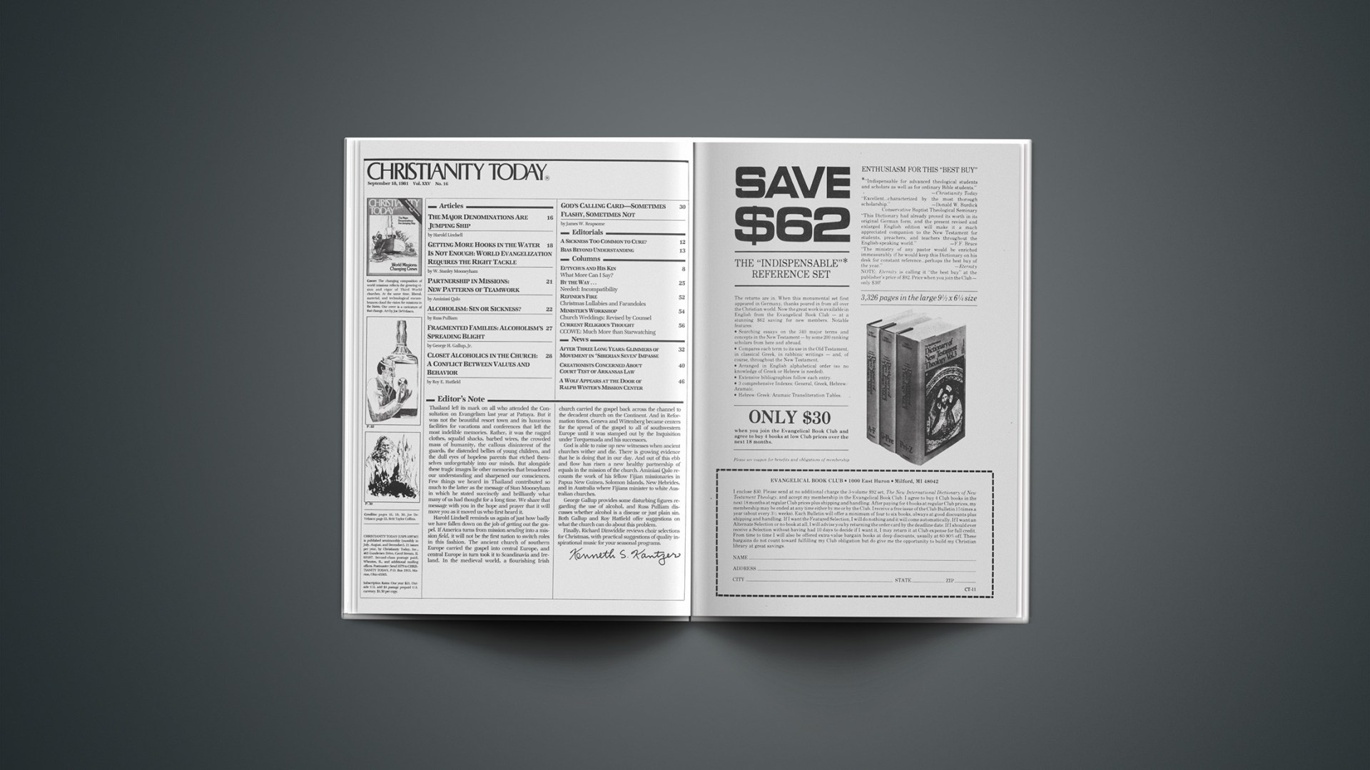 George Gallup provides some disturbing figures regarding the use of alcohol, and Russ Pulliam discusses whether alcohol is a disease or just plain sin. Both Gallup and Roy Hatfield offer suggestions on what the church can do about this problem.