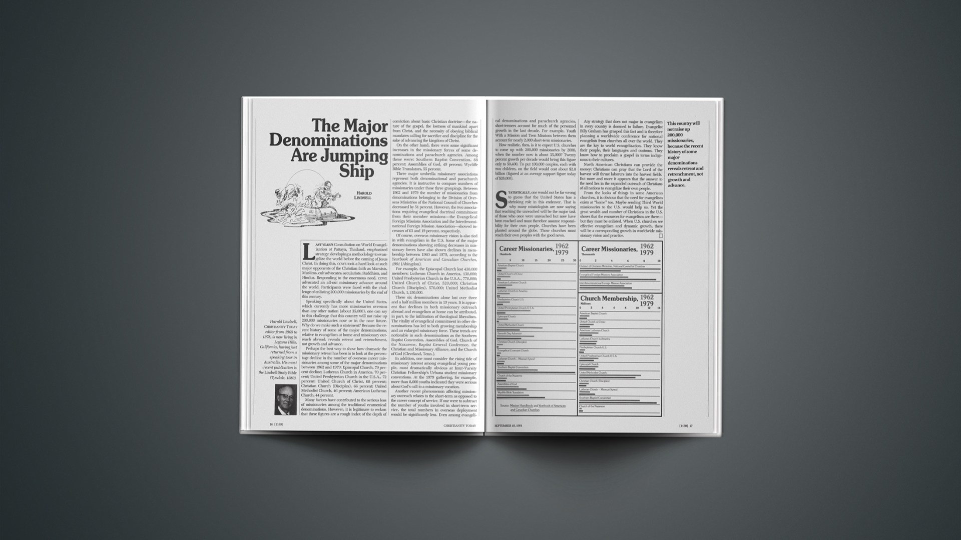 Of course, overseas missionary vision is also tied in with evangelism in the U.S. Some of the major denominations showing striking decreases in missionary forces have also shown declines in membership between 1960 and 1979, according to the Yearbook of American and Canadian Churches, 1981 (Abingdon).