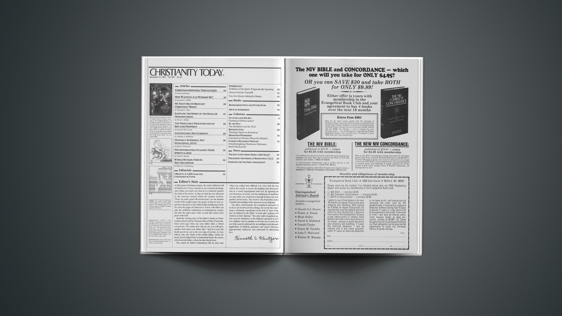 At this joyous Christmas season, the entire editorial staff of CHRISTIANITY TODAY extends to you warmest greetings, and wishes you God’s very best as we celebrate together the birth of the Savior. In him we find the one still point in the universe around which all creation revolves. “Peace on earth, good will toward men” are the familiar words of the angels’ song. Our prayer is that we may experience his peace in the midst of this maddening world. We trust the pages of CHRISTIANITY TODAY will reflect not only the turbulent restlessness of contemporary society, but also the quiet inner calm of soul that comes from peace with God.