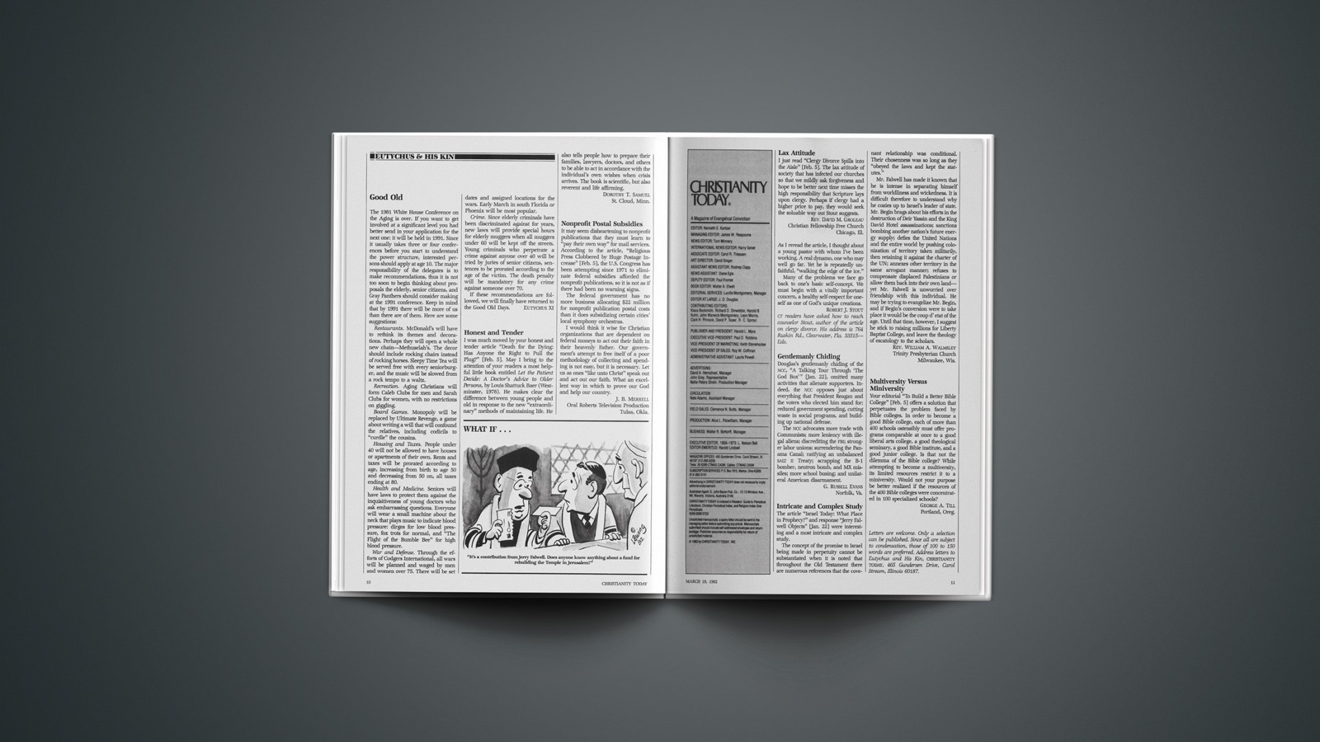 Letters are welcome. Only a selection can be published. Since all are subject to condensation, those of 100 to 150 words are preferred. Address letters to Eutychus and His Kin, CHRISTIANITY TODAY, 465 Gundersen Drive, Carol Stream, Illinois 60187.
