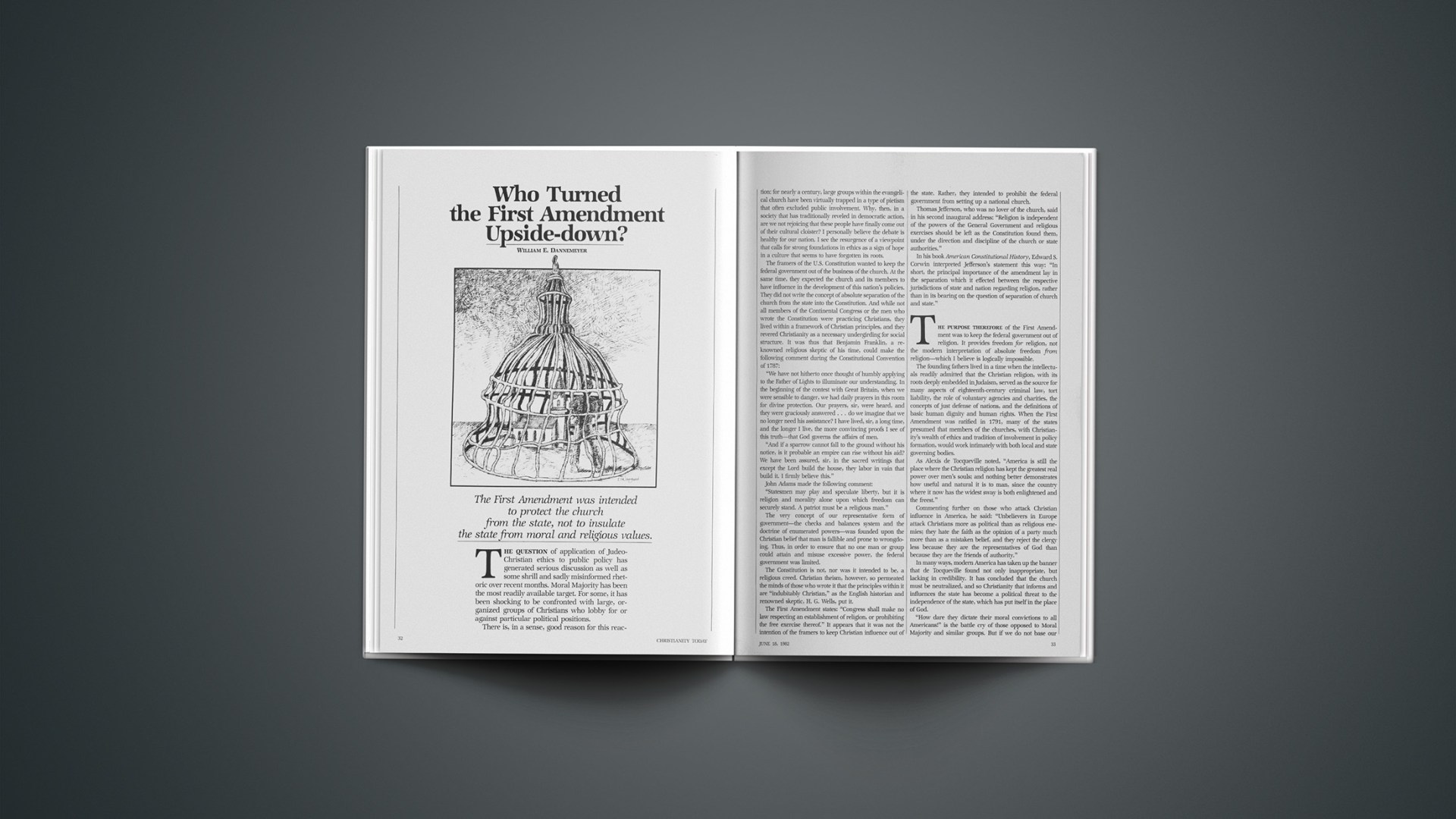 In many ways, modern America has taken up the banner that de Tocqueville found not only inappropriate, but lacking in credibility. It has concluded that the church must be neutralized, and so Christianity that informs and influences the state has become a political threat to the independence of the state, which has put itself in the place of God.