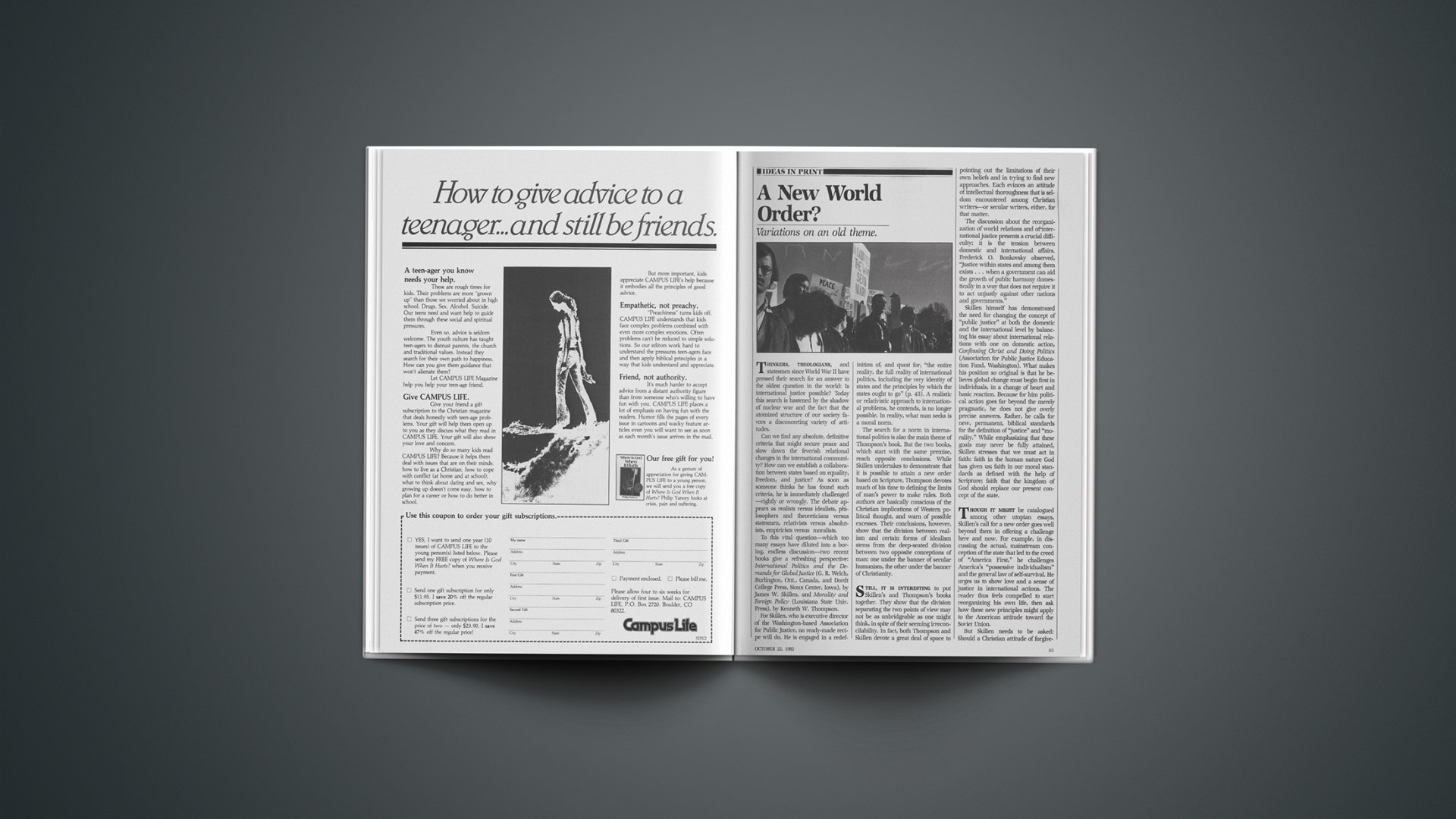 To this vital question—which too many essays have diluted into a boring, endless discussion—two recent books give a refreshing perspective: International Politics and the Demands for Global Justice (G. R. Welch, Burlington, Ont., Canada, and Dordt College Press, Sioux Center, Iowa), by James W. Skillen, and Morality and Foreign Policy (Louisiana State Univ. Press), by Kenneth W. Thompson.