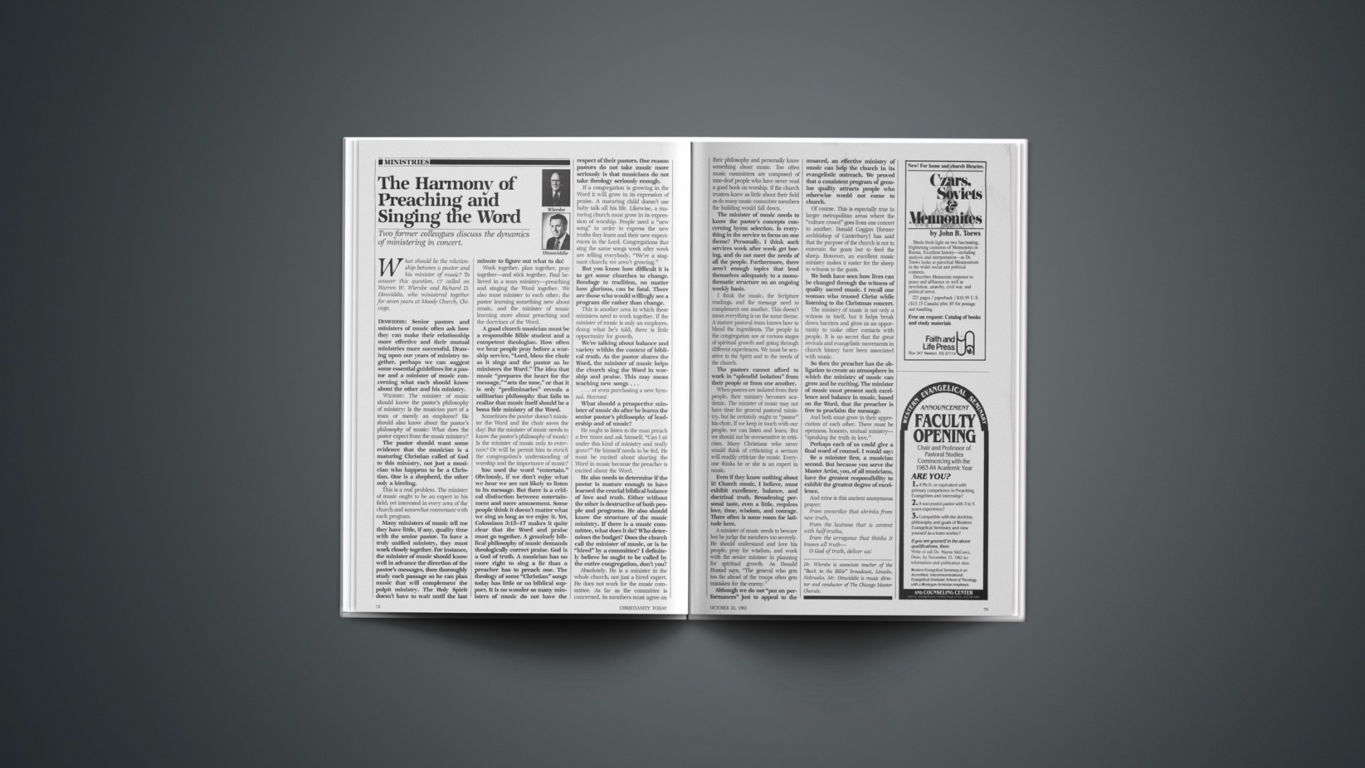 What should be the relationship between a pastor and his minister of music? To answer this question, CT called on Warren W. Wiersbe and Richard D. Dinwiddie, who ministered together for seven years at Moody Church, Chicago.