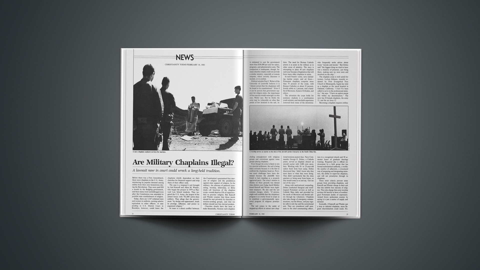 At issue is a direct conflict between the Constitution’s guaranteed free exercise of religion and the prohibition against state support of religion. In the military, the absence of pastoral counseling, worship, fellowship, or Bible study—all functions of the chaplain corps—would deprive GIs of opportunities to practice religion. But Katcoff and Wieder counter that those needs should be met privately by churches or mission-sending groups, and that tax dollars should not line clerical pockets.