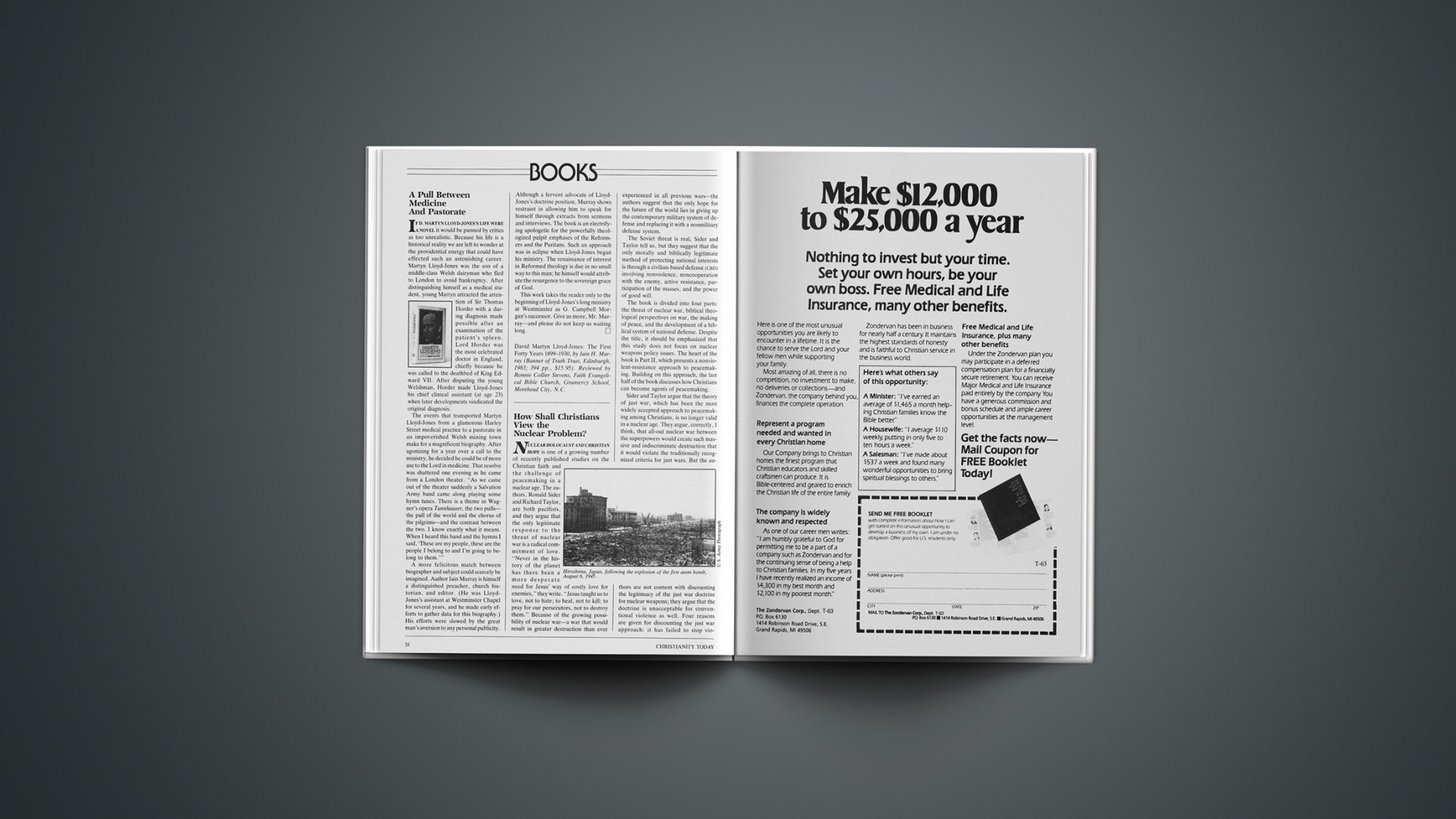 The events that transported Martyn Lloyd-Jones from a glamorous Harley Street medical practice to a pastorate in an impoverished Welsh mining town make for a magnificent biography. After agonizing for a year over a call to the ministry, he decided he could be of more use to the Lord in medicine. That resolve was shattered one evening as he came from a London theater. “As we came out of the theater suddenly a Salvation Army band came along playing some hymn tunes. There is a theme in Wagner’s opera Tannhauser, the two pulls—the pull of the world and the chorus of the pilgrims—and the contrast between the two. I know exactly what it means. When I heard this band and the hymns I said, ‘These are my people, these are the people I belong to and I’m going to belong to them.’ ”