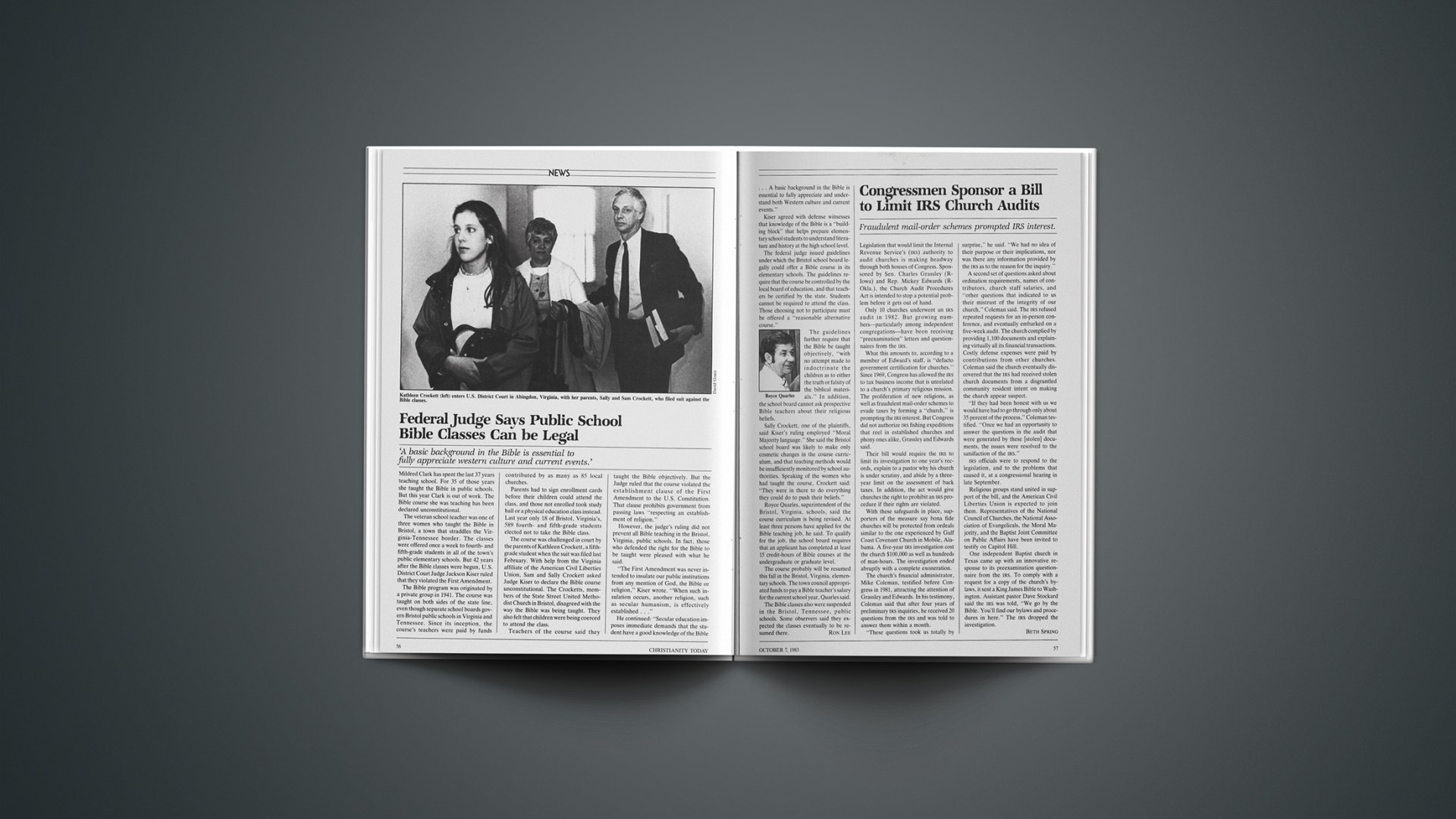 The veteran school teacher was one of three women who taught the Bible in Bristol, a town that straddles the Virginia-Tennessee border. The classes were offered once a week to fourth- and fifth-grade students in all of the town’s public elementary schools. But 42 years after the Bible classes were begun, U.S. District Court Judge Jackson Kiser ruled that they violated the First Amendment.