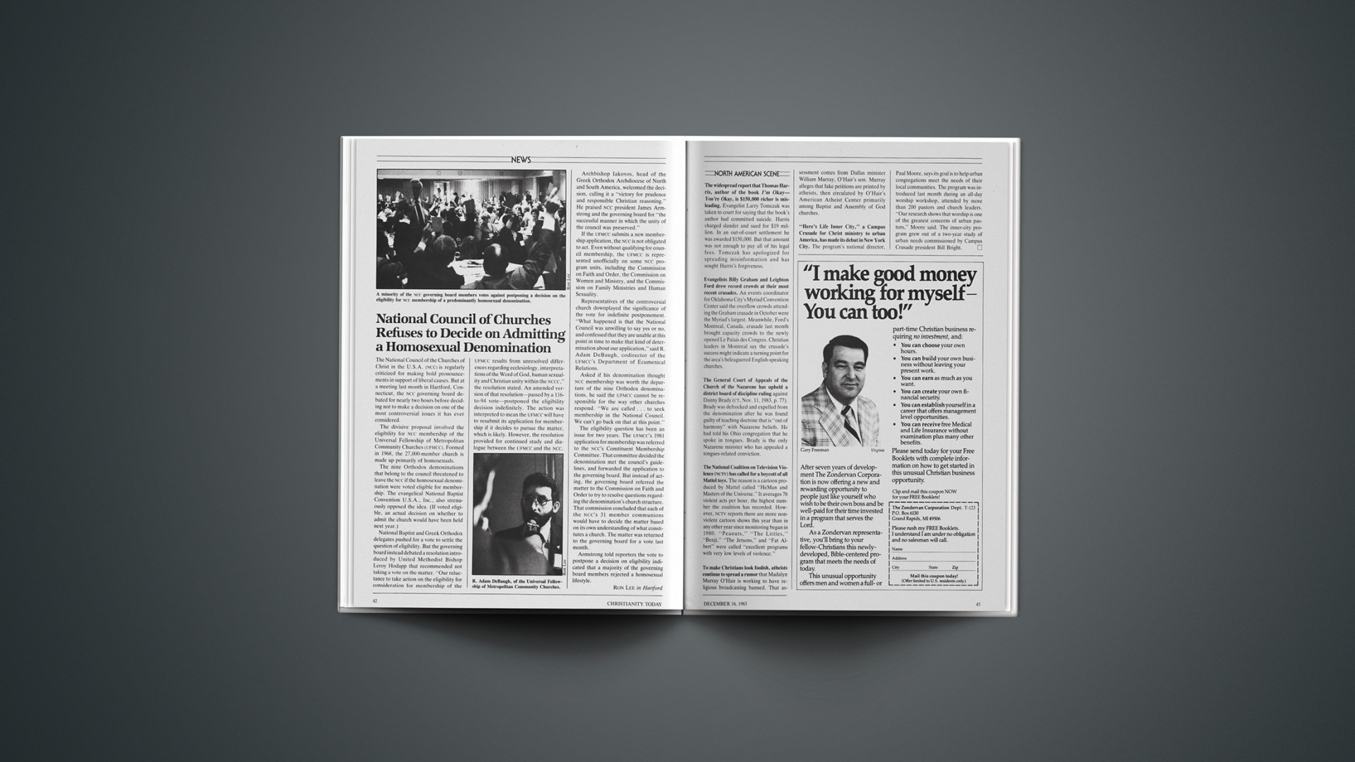 The divisive proposal involved the eligibility for NCC membership of the Universal Fellowship of Metropolitan Community Churches (UFMCC). Formed in 1968, the 27,000-member church is made up primarily of homosexuals.