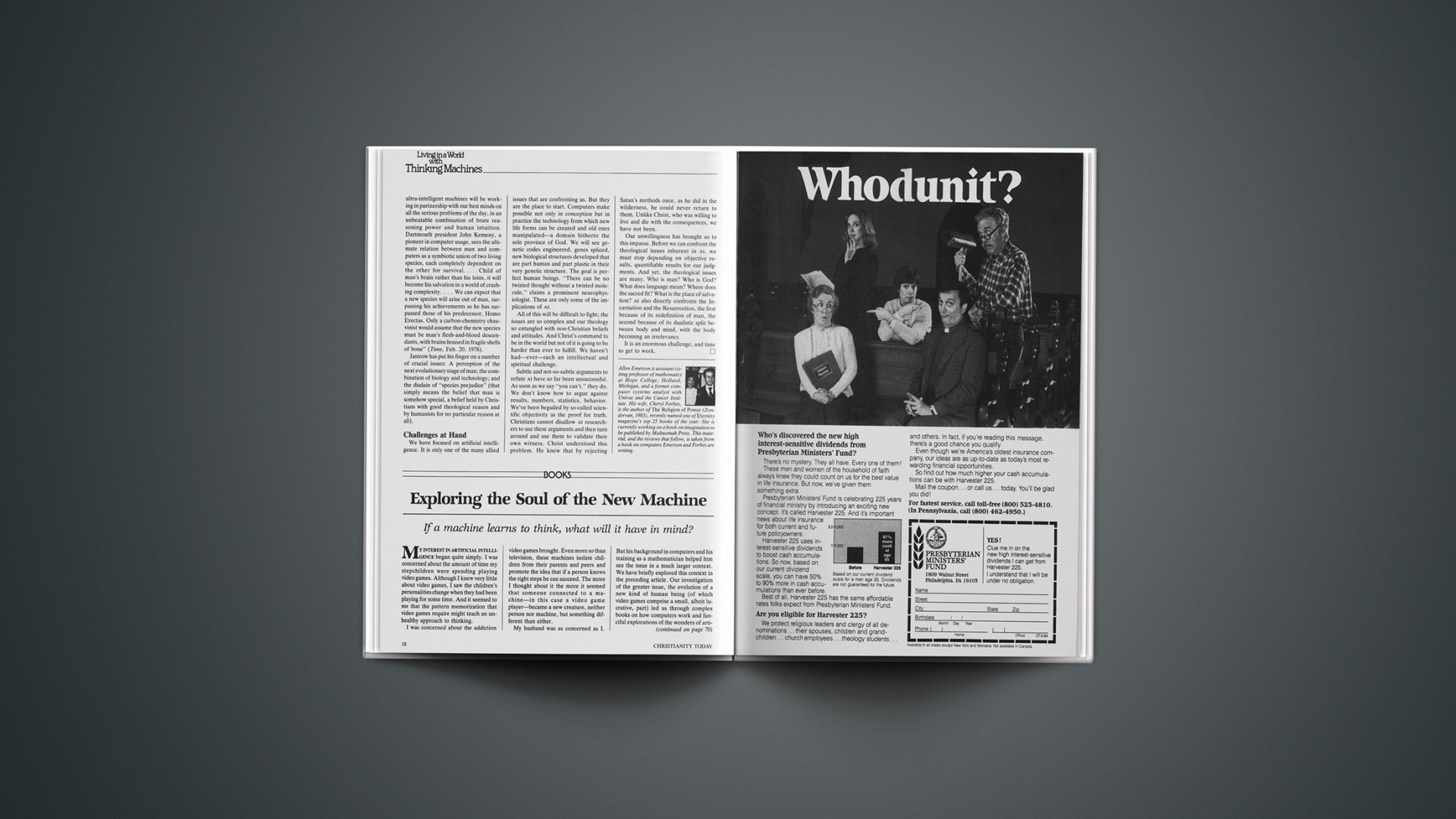 The cognitive scientists, psychologists, psycholinguists, and AI researchers discount religion entirely and are, for the most part, strict behaviorists—and dualists as well. As I read their views I realized with some shock how deeply imbedded into our theology certain of their presuppositions had become. And I realized how monumental was the task to think and judge simply as Christians and not as late-twentieth-century Americans enamored with gadgetry—gadgetry we had been led to believe by IBM and its competitors was ordinary machinery. We have been glad for the lie, because we all know what machines are: mere tools. But what the books I’ll review admit is that intelligent machines are not mere tools. Computers do not necessarily do just what we tell them to, despite what we’ve heard on television or been told by our company’s information officer.
