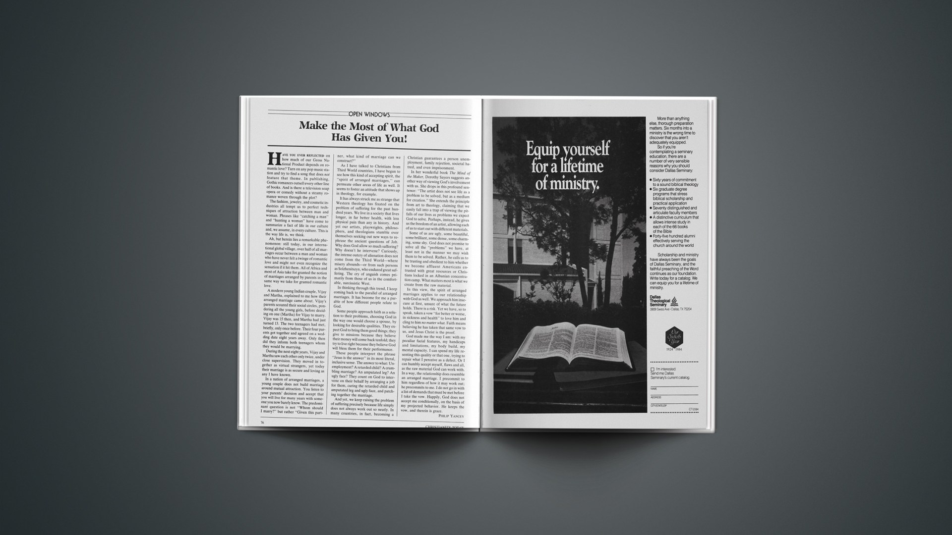 As I have talked to Christians from Third World countries, I have begun to see how this kind of accepting spirit, the “spirit of arranged marriages,” can permeate other areas of life as well. It seems to foster an attitude that shows up in theology, for example.