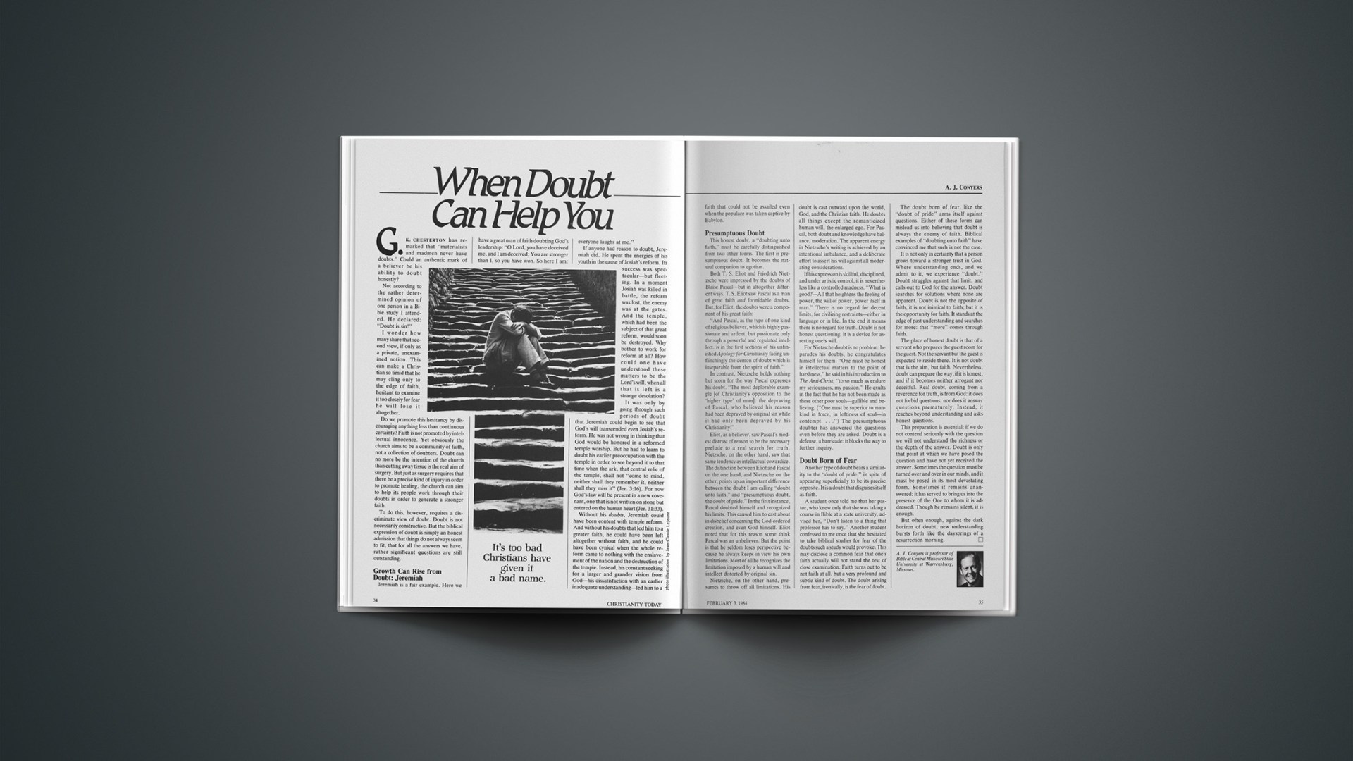 The doubt born of fear, like the “doubt of pride” arms itself against questions. Either of these forms can mislead us into believing that doubt is always the enemy of faith. Biblical examples of “doubting unto faith” have convinced me that such is not the case.