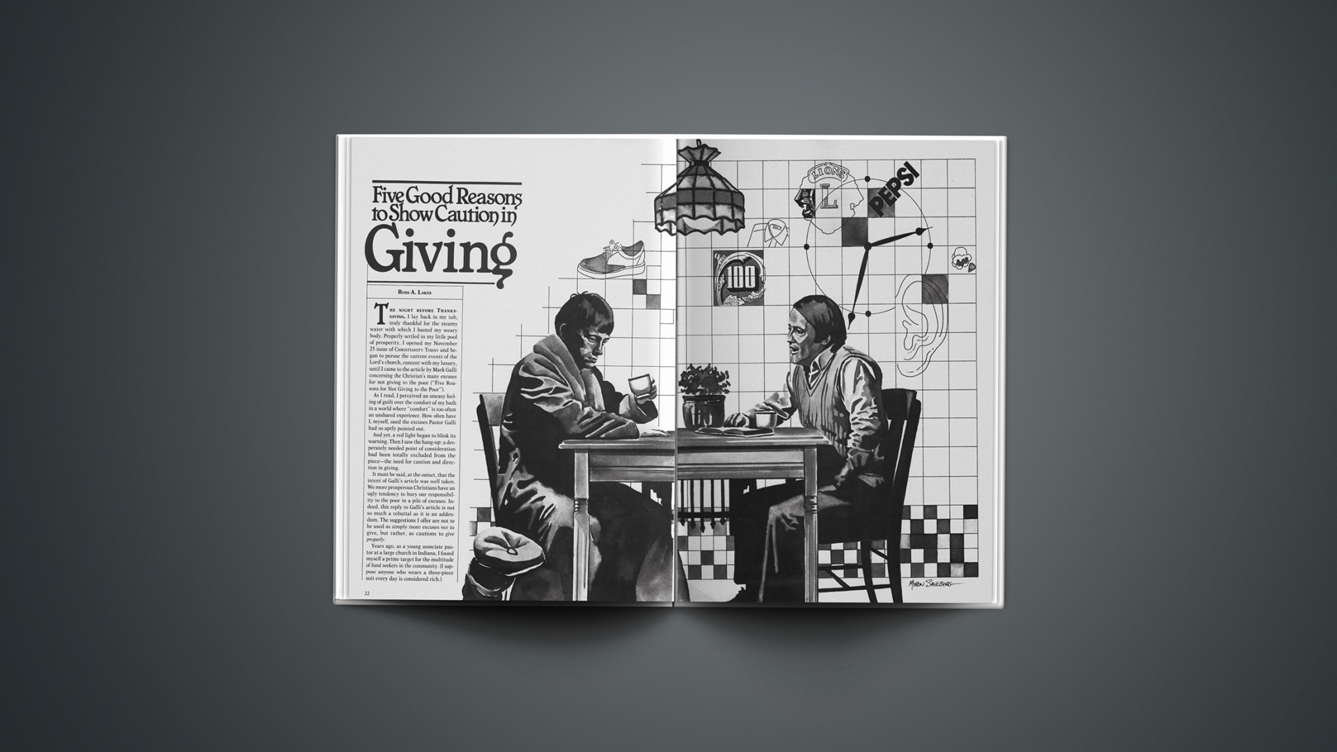 It must be said, at the outset, that the intent of Galli’s article was well taken. We more prosperous Christians have an ugly tendency to bury our responsibility to the poor in a pile of excuses. Indeed, this reply to Galli’s article is not so much a rebuttal as it is an addendum. The suggestions I offer are not to be used as simply more excuses not to give, but rather, as cautions to give properly.