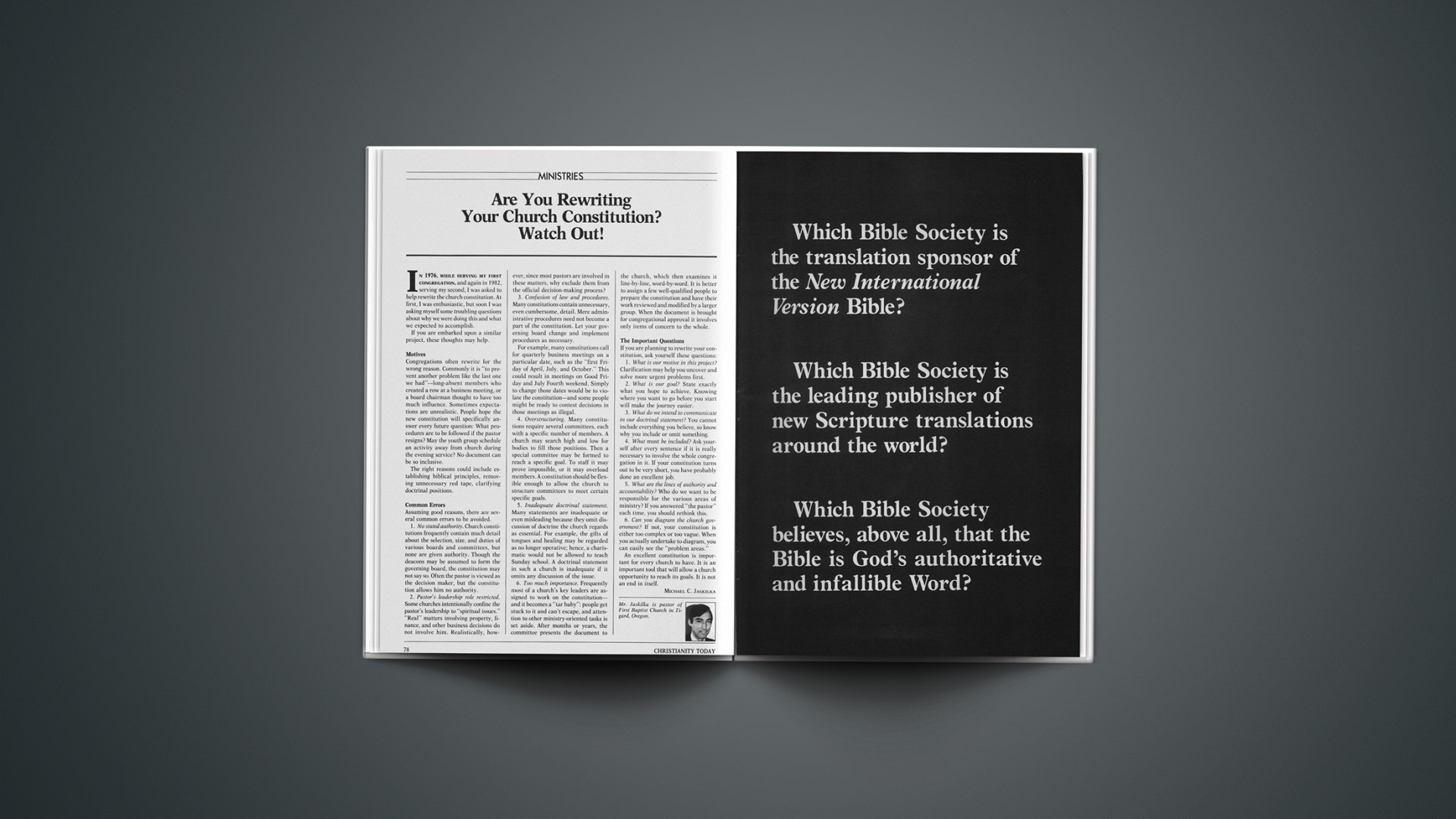 In 1976, while serving my first congregation, and again in 1982, serving my second, I was asked to help rewrite the church constitution. At first, I was enthusiastic, but soon I was asking myself some troubling questions about why we were doing this and what we expected to accomplish.
