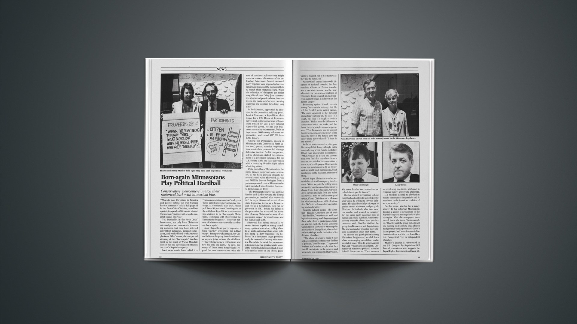 Sharply defined issues—like abortion—brought Christians out of their “holy huddles,” one observer said, and bipartisan training workshops equipped them to be effective participants. Sharon Mueller, with the Social Concerns Committee of the Greater Minneapolis Association of Evangelicals, directed 41 such workshops at the invitation of individual churches.