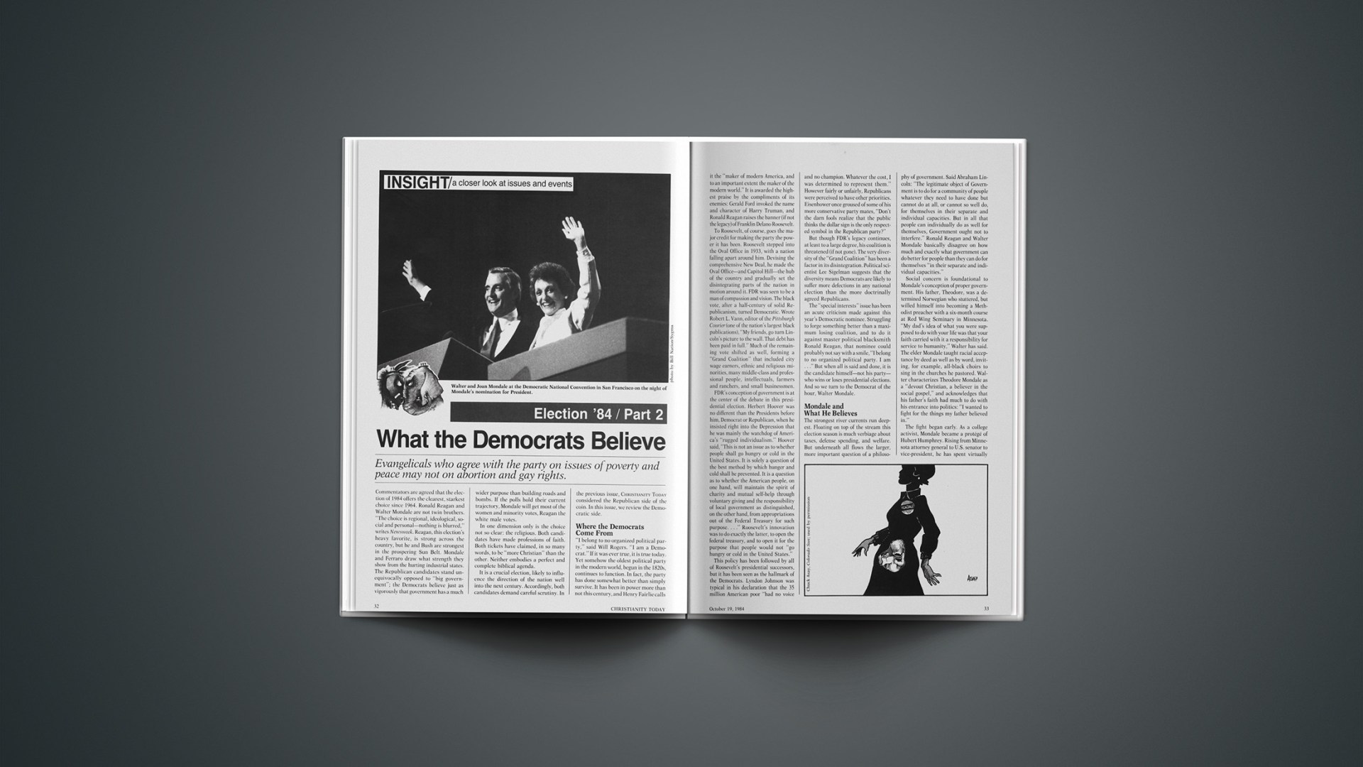 It is a crucial election, likely to influence the direction of the nation well into the next century. Accordingly, both candidates demand careful scrutiny. In the previous issue, CHRISTIANITY TODAY considered the Republican side of the coin. In this issue, we review the Democratic side.