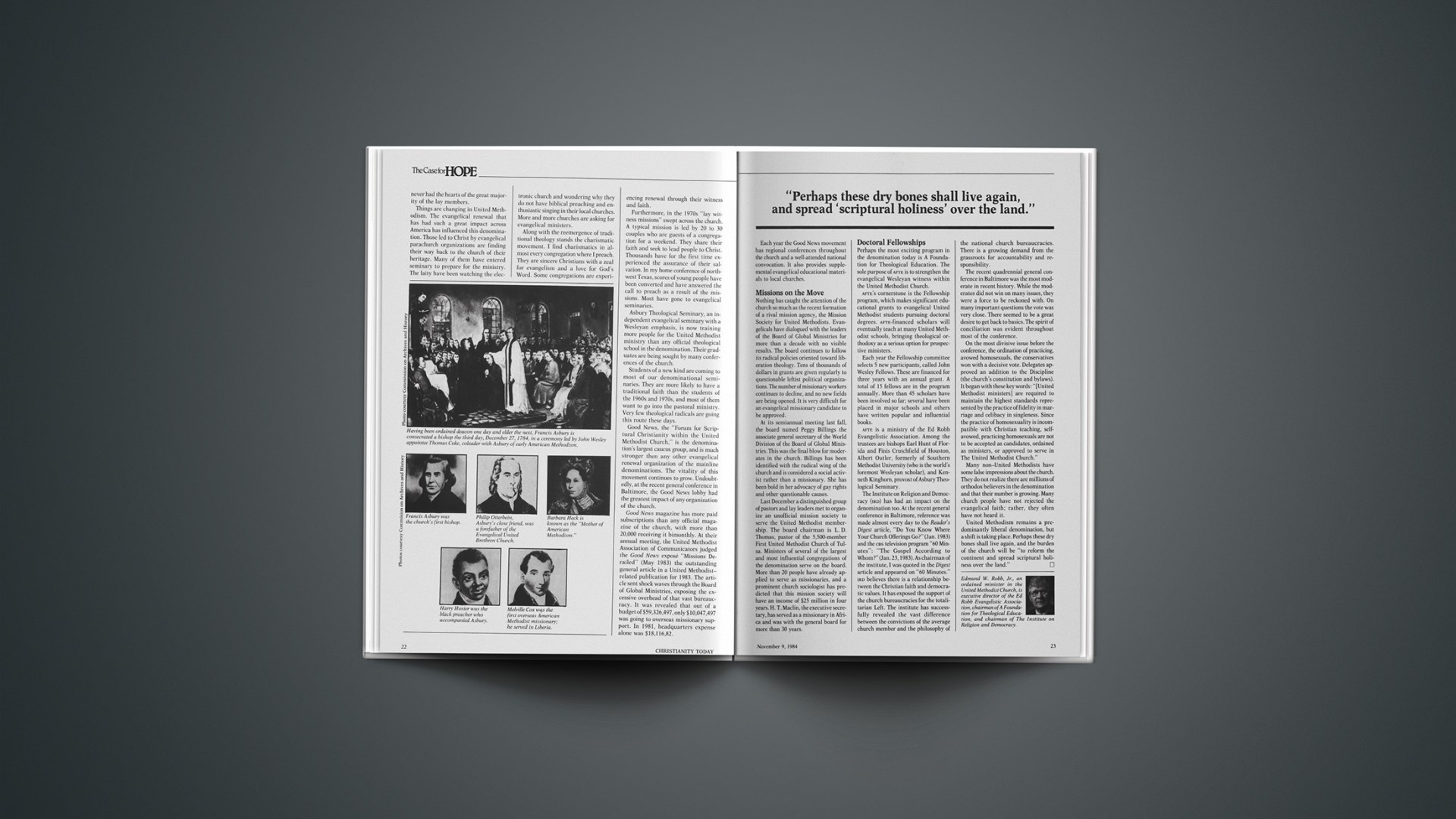 AFTE is a ministry of the Ed Robb Evangelistic Association. Among the trustees are bishops Earl Hunt of Florida and Finis Crutchfield of Houston, Albert Outler, formerly of Southern Methodist University (who is the world’s foremost Wesleyan scholar), and Kenneth Kinghorn, provost of Asbury Theological Seminary.