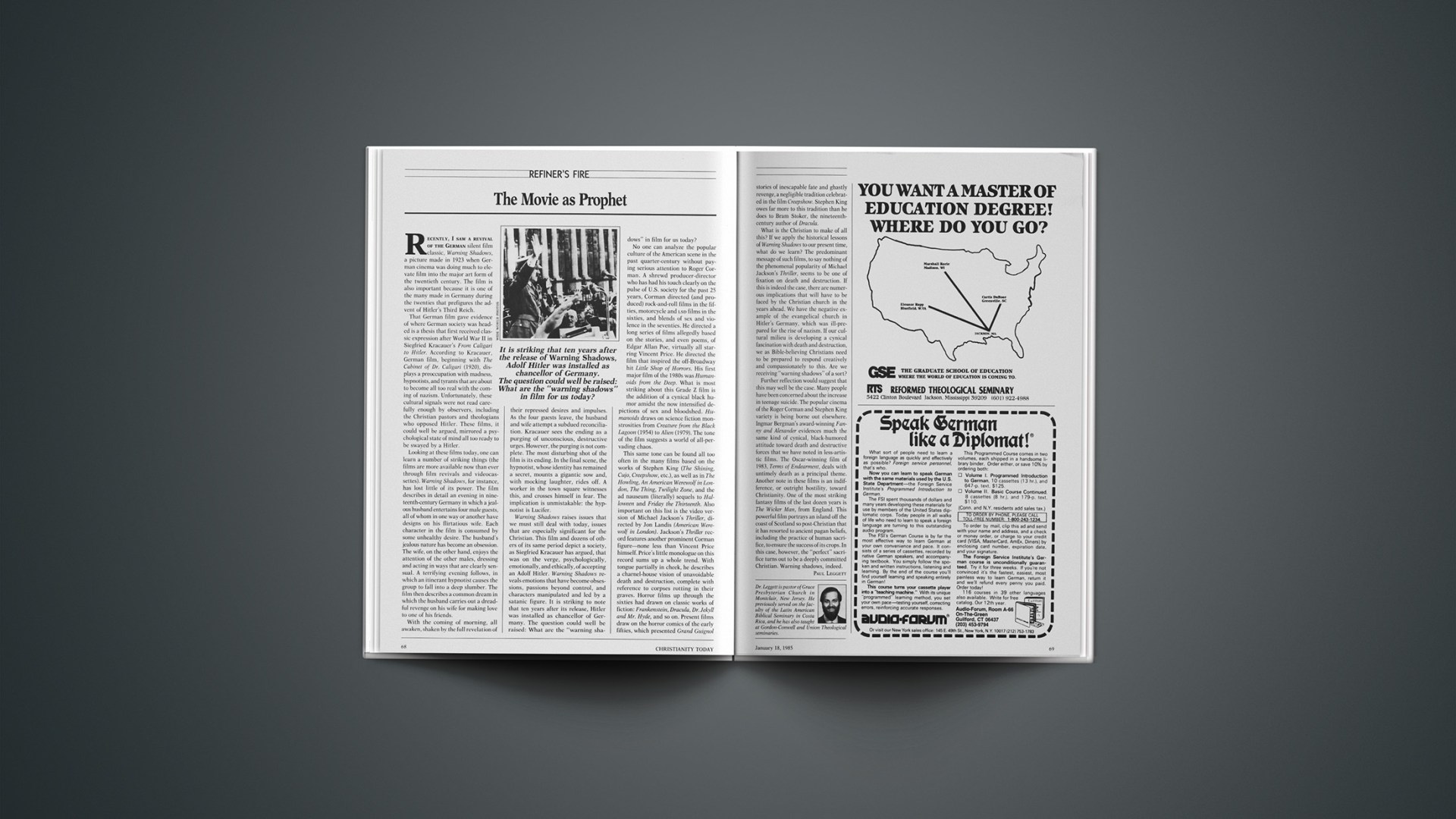 What is the Christian to make of all this? If we apply the historical lessons of Warning Shadows to our present time, what do we learn? The predominant message of such films, to say nothing of the phenomenal popularity of Michael Jackson’s Thriller, seems to be one of fixation on death and destruction. If this is indeed the case, there are numerous implications that will have to be faced by the Christian church in the years ahead. We have the negative example of the evangelical church in Hitler’s Germany, which was ill-prepared for the rise of nazism. If our cultural milieu is developing a cynical fascination with death and destruction, we as Bible-believing Christians need to be prepared to respond creatively and compassionately to this. Are we receiving “warning shadows” of a sort?