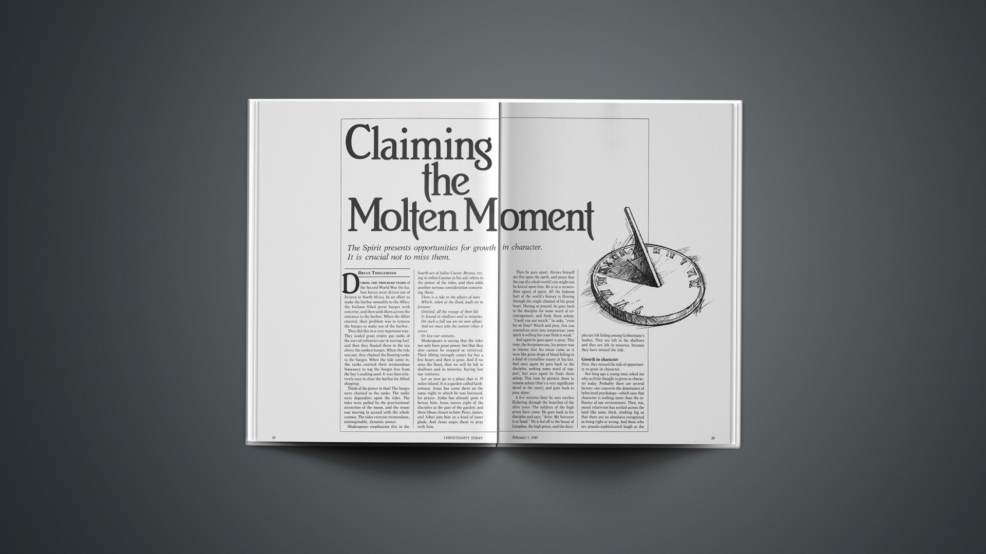 My first pastorate was in McKeesport, Pennsylvania, a city famous at that time for the world’s largest steel tube-rolling mills. They created a seamless tube that was unparalleled. Often I stood in the command module of one of those great machines (called a pulpit, incidentally) with the machine operator. I would see a great serpent of molten metal come slithering down into the machine, where it would be chopped off. Then the machine would grasp it by its ends and begin to spin it; by centrifugal force that bar of molten metal would open from the inside out, forming a perfect tube of steel, without seam or blemish.