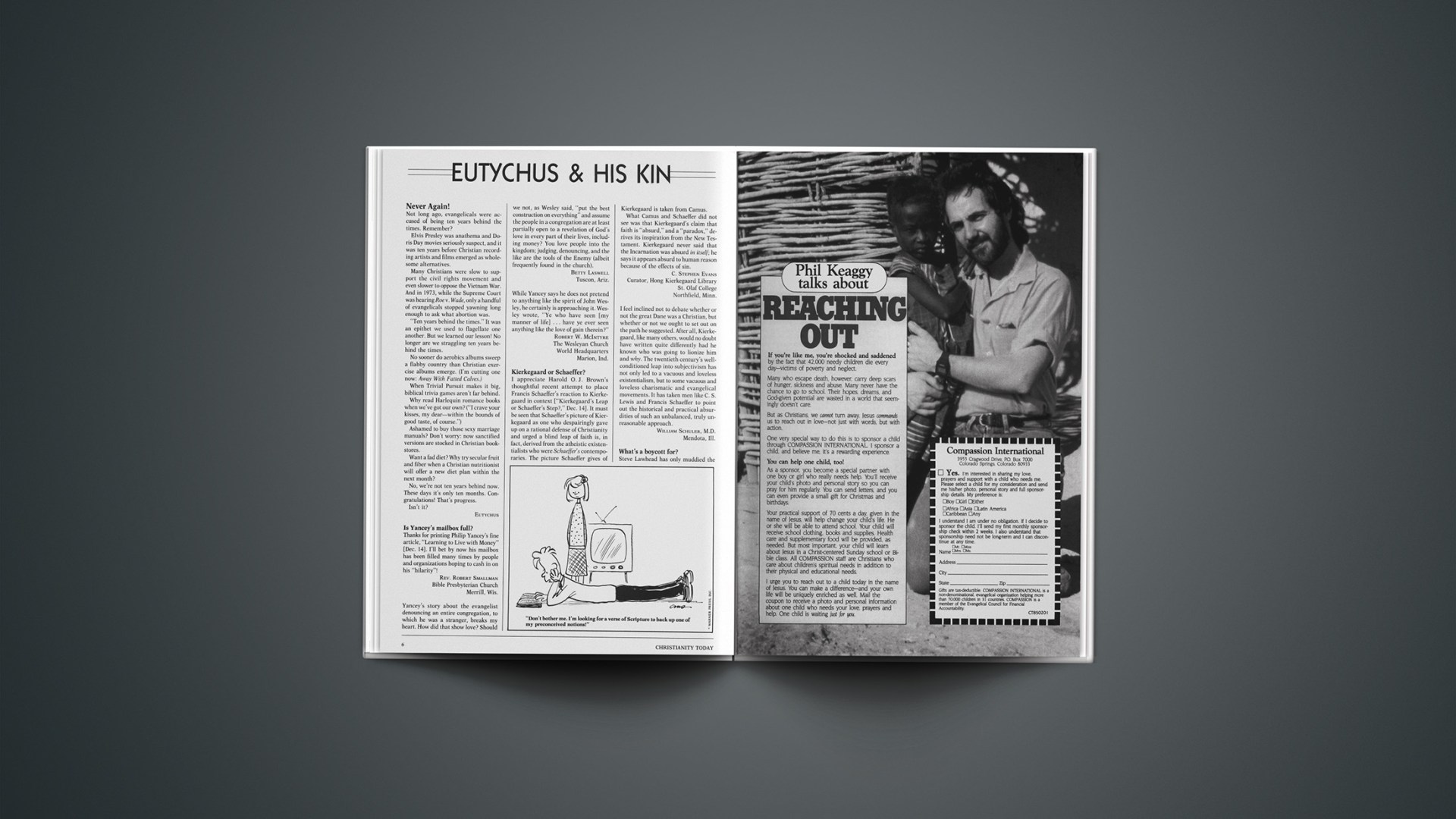 The November 23 issue of CT seemed particularly good. From “John Wesley and Megatrends” to the Soviets and the Sandinistas I found it informative and well-executed journalism. I especially enjoyed Anthony Bloom’s article on prayer. I am glad you fished it out of that 1970 publication. It is a good view of God through his Orthodox pen. Thanks for your work in attempting to keep us up to date about our world and what God is up to in it.