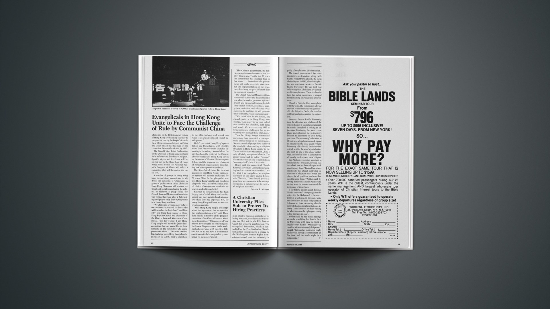 Christians in the British crown colony of Hong Kong are banding together to prepare for rule by the People’s Republic of China. An accord signed by China and Great Britain late last year set the course for the transfer of rule by 1997.