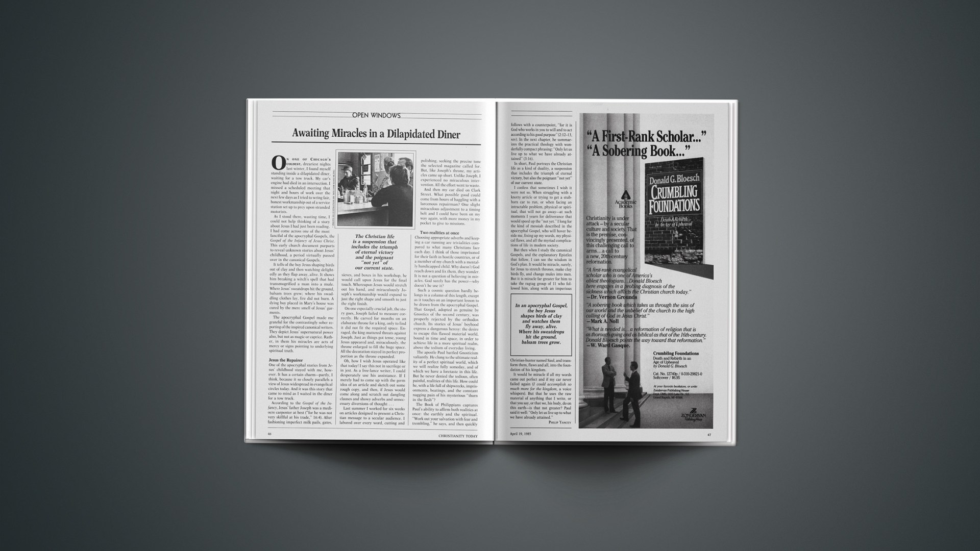 One of the apocryphal stories from Jesus’ childhood stayed with me, however. It has a certain charm—partly, I think, because it so closely parallels a view of Jesus widespread in evangelical circles today. And it was this story that came to mind as I waited in the diner for a tow truck.