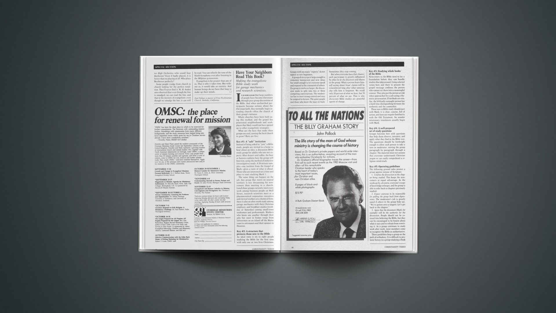 Instead of being asked to “join” a Bible study, people are invited to a home to hear about an idea: a discussion Bible study group for adults who are not experts. After dessert and coffee, the host or hostess explains how the group will function, using the method of inductive (investigative) study. A 20-minute sampler—one incident from the Gospel of Mark—gives a taste of what is ahead. Those who are interested set a time and place to start studying Mark 1.