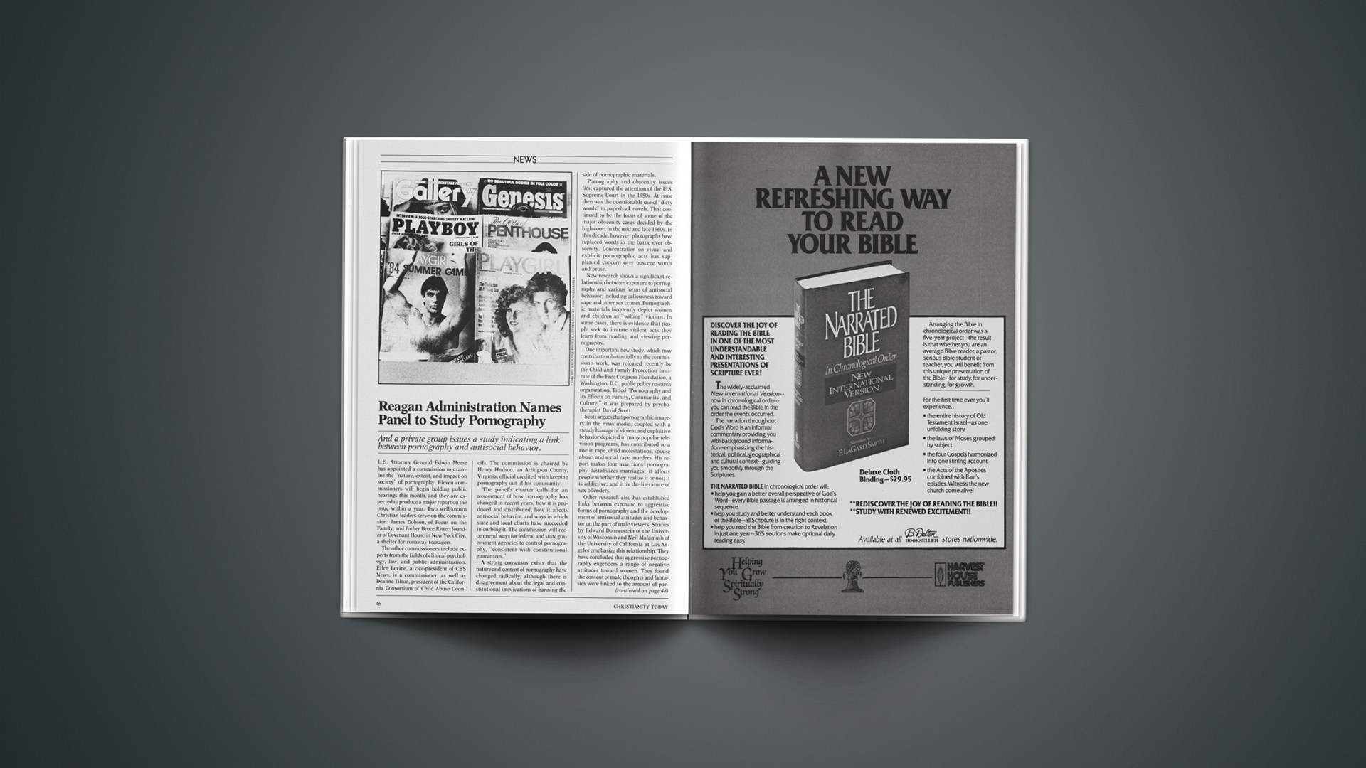 U.S. Attorney General Edwin Meese has appointed a commission to examine the “nature, extent, and impact on society” of pornography. Eleven commissioners will begin holding public hearings this month, and they are expected to produce a major report on the issue within a year. Two well-known Christian leaders serve on the commission: James Dobson, of Focus on the Family; and Father Bruce Ritter, founder of Covenant House in New York City, a shelter for runaway teenagers.