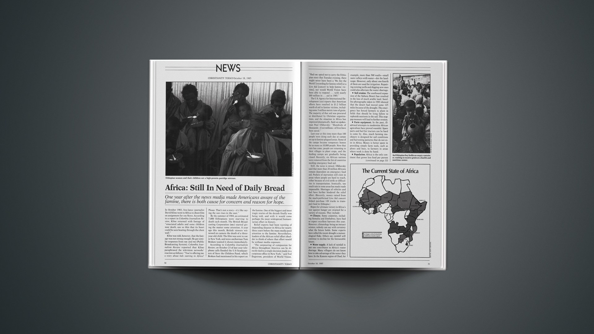 The U.S. Agency for International Development (AID) reports that American efforts have resulted in $1.2 billion worth of aid to famine victims, including some 3 million metric tons of grain. The majority of that aid was procured or distributed by Christian organizations, and the situation in Africa has improved dramatically. Said AID spokesman Paul Olkhovsky: “Hundreds of thousands—if not millions—of lives have been saved.”