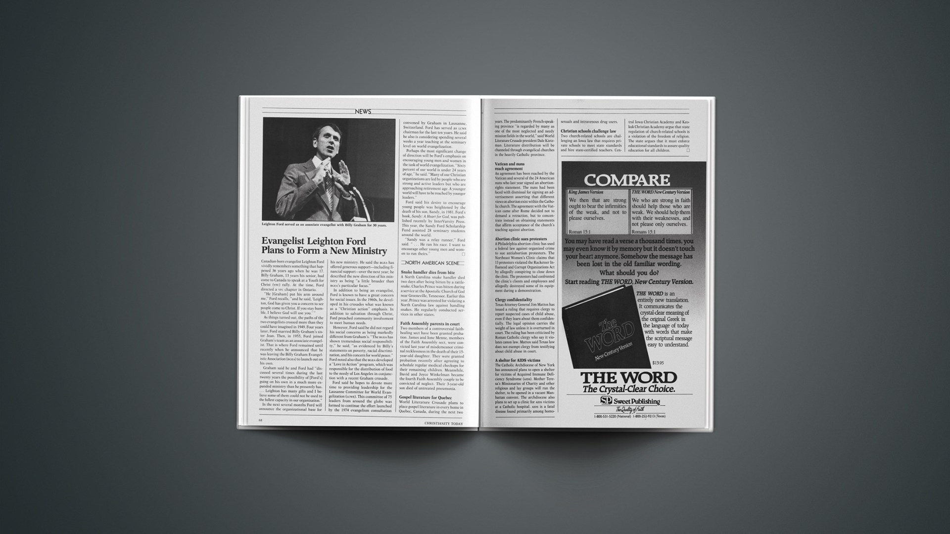 Canadian-born evangelist Leighton Ford vividly remembers something that happened 36 years ago when he was 17. Billy Graham, 13 years his senior, had come to Canada to speak at a Youth for Christ (YFC) rally. At the time, Ford directed a YFC chapter in Ontario.