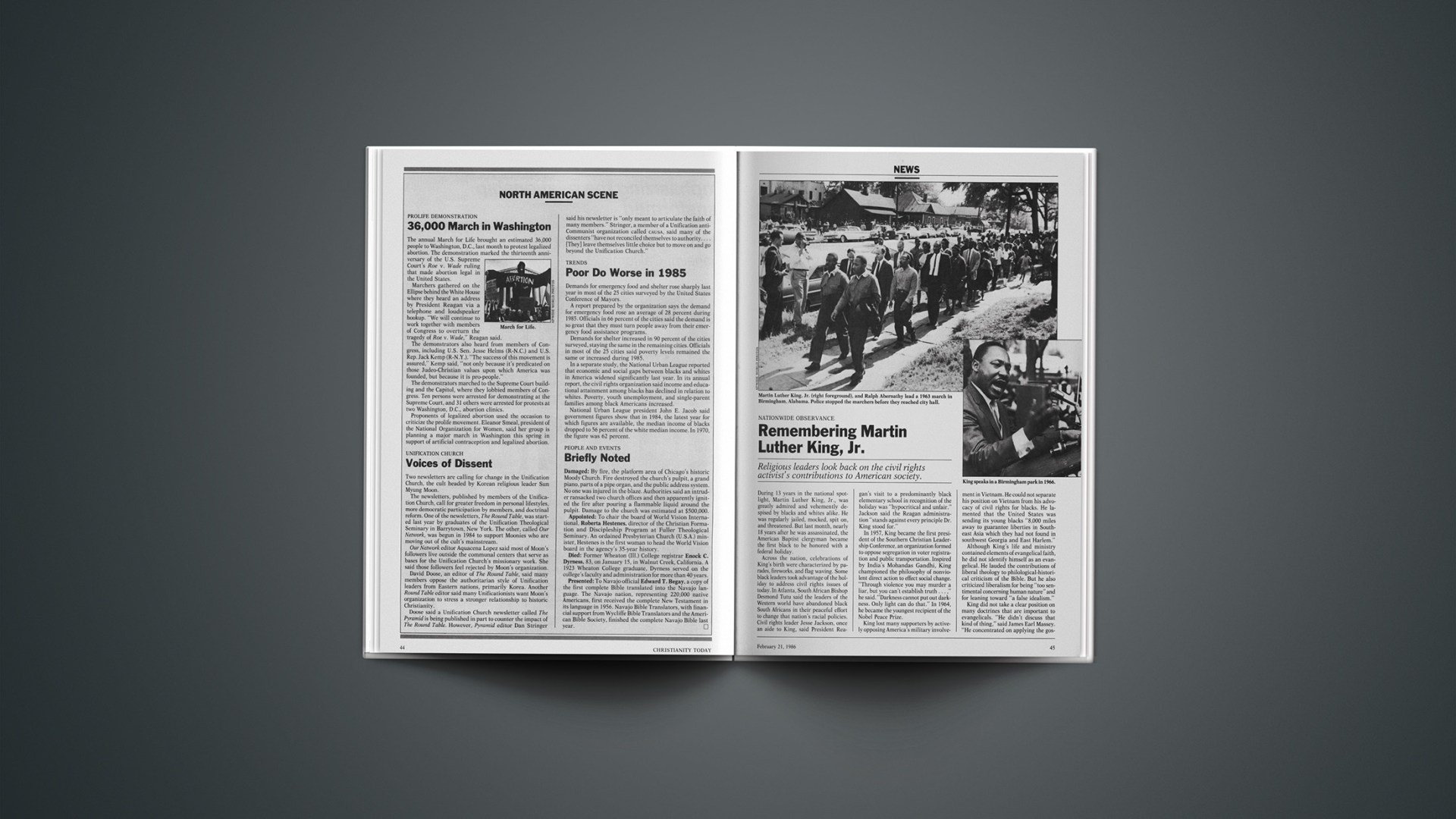 During 13 years in the national spotlight, Martin Luther King, Jr., was greatly admired and vehemently despised by blacks and whites alike. He was regularly jailed, mocked, spit on, and threatened. But last month, nearly 18 years after he was assassinated, the American Baptist clergyman became the first black to be honored with a federal holiday.